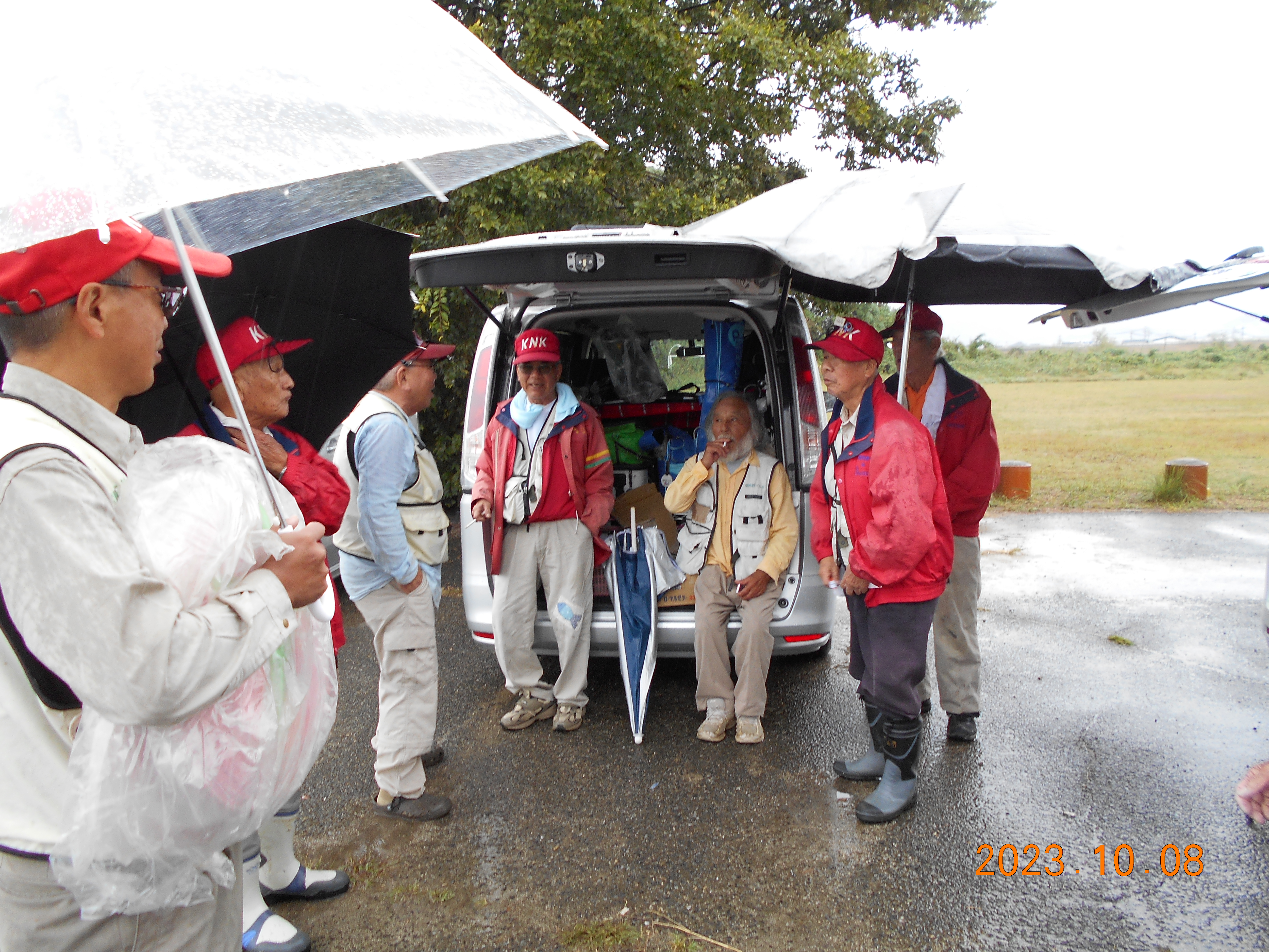 当日の参加者は9名でした。朝6時集合で競技をスタートしました、7名はワンドで2名は本流で台を据えました。