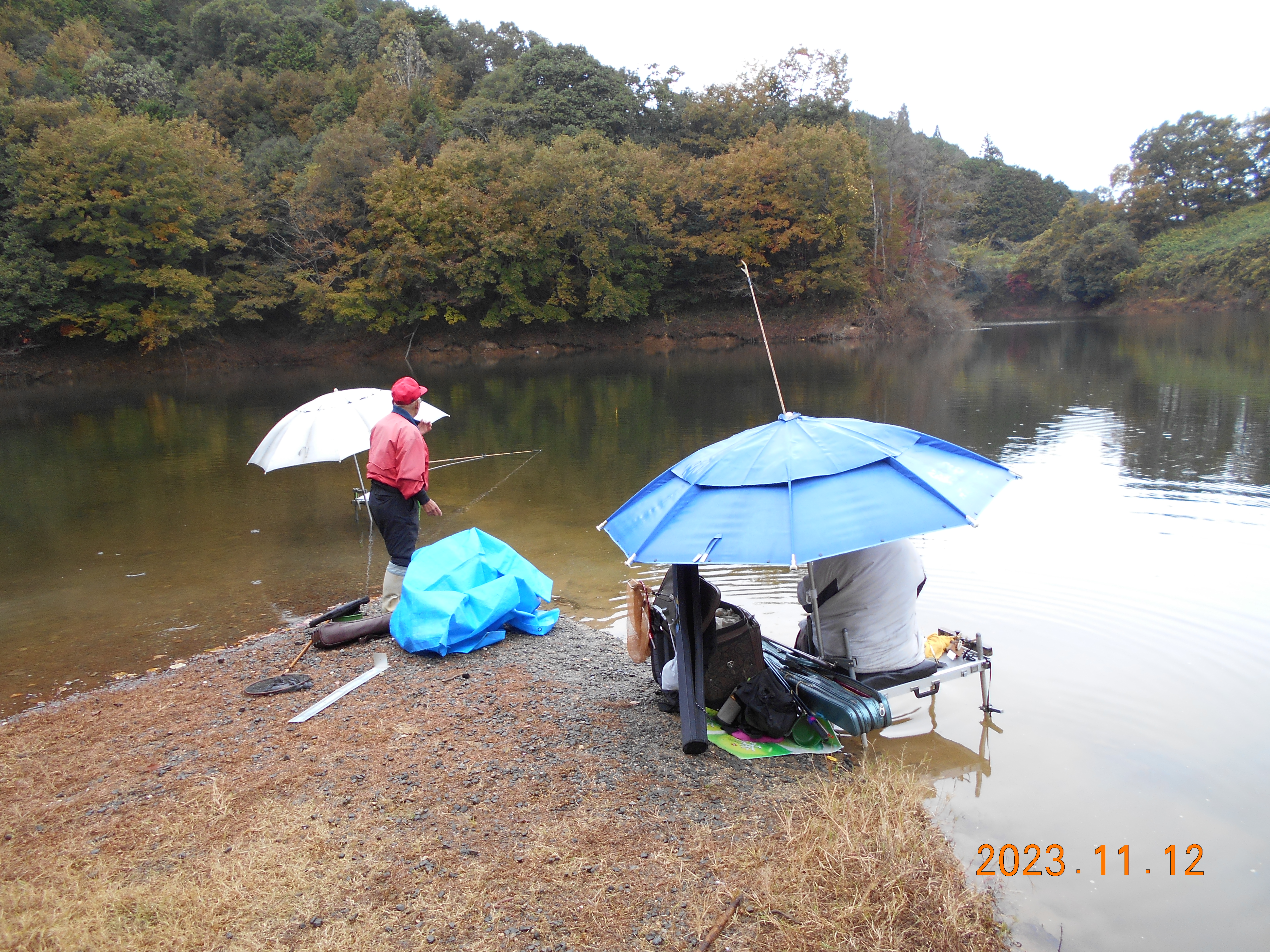 場所は11月にはめずらしく布目ダムを使用しました。あまり釣果が良くないのか釣り人は少ないように思われる。前日から布目ダムに入り様子を見ていたが、焼却場のスロープに6名位,釜淵のスロープに6名位、山の神に2名、トンネル下に1名、副ダムに1名という状況でした。