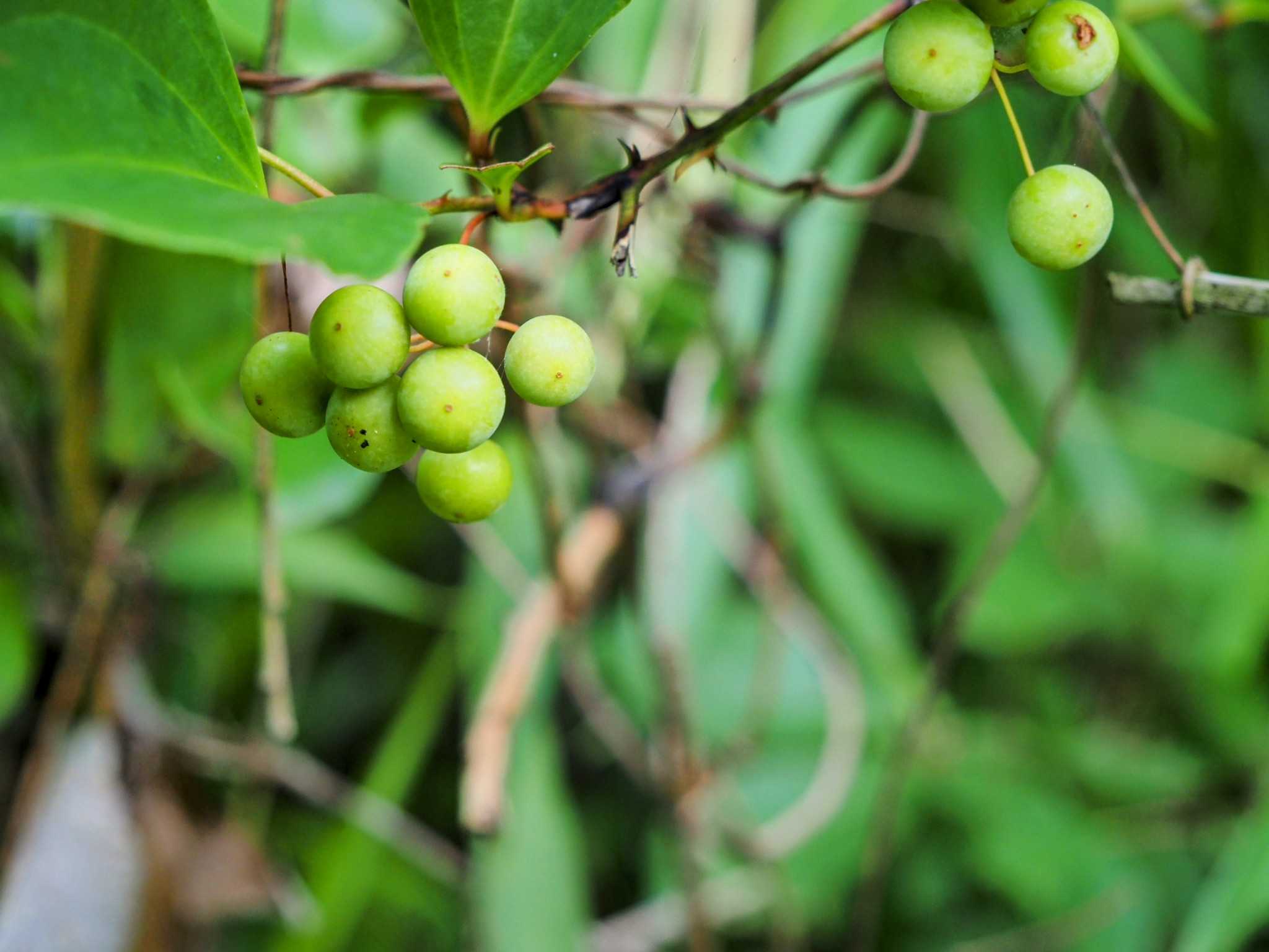 猿捕茨の青い果実 サルトリイバラ、サルトリイバラ科シオデ属