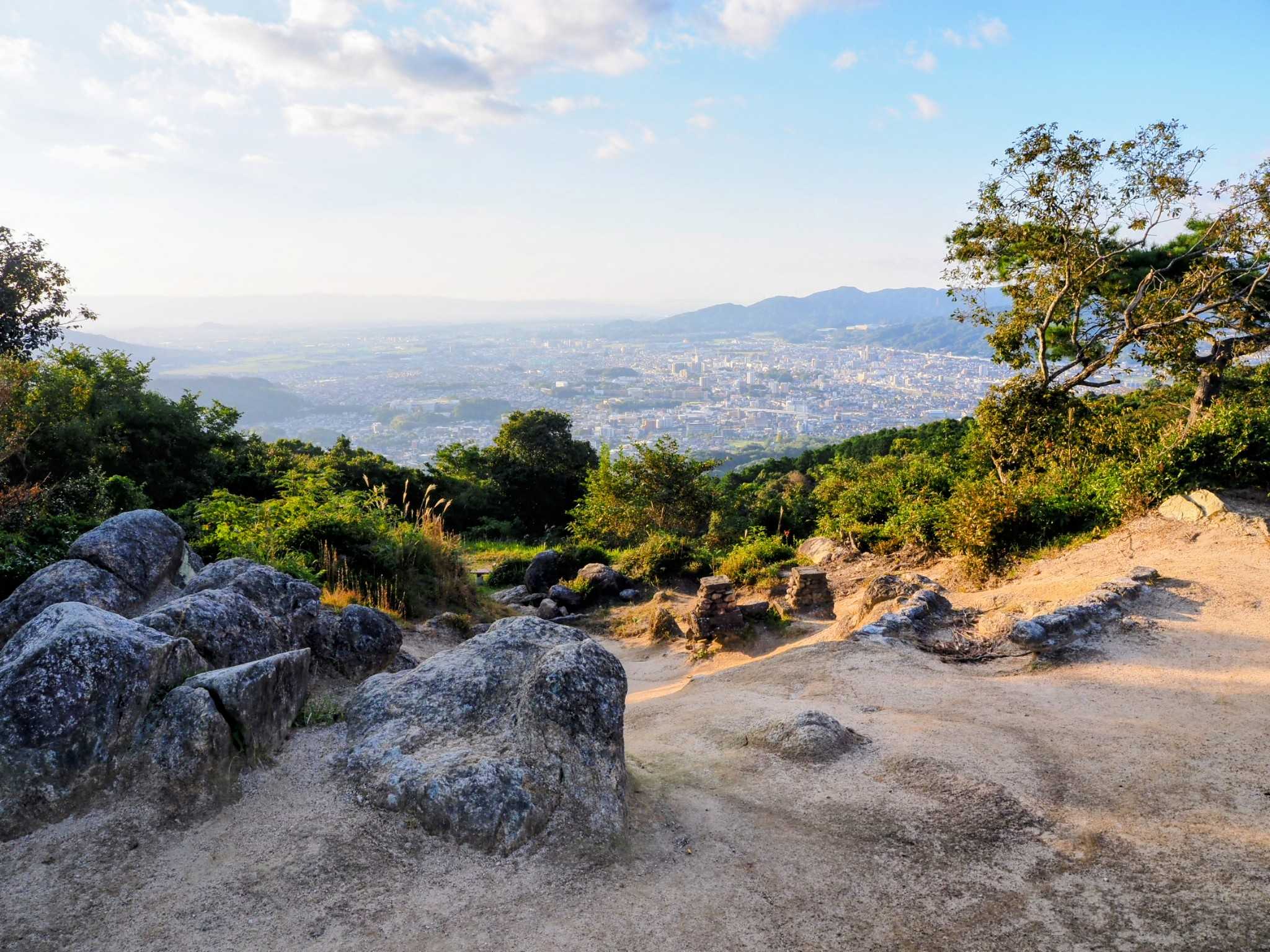 ここから土塁を東に進み、遠見所から四王寺区集落、県民の森を経て、大城山30番札所から増長天礎石跡、焼米ヶ原と歩くことに。