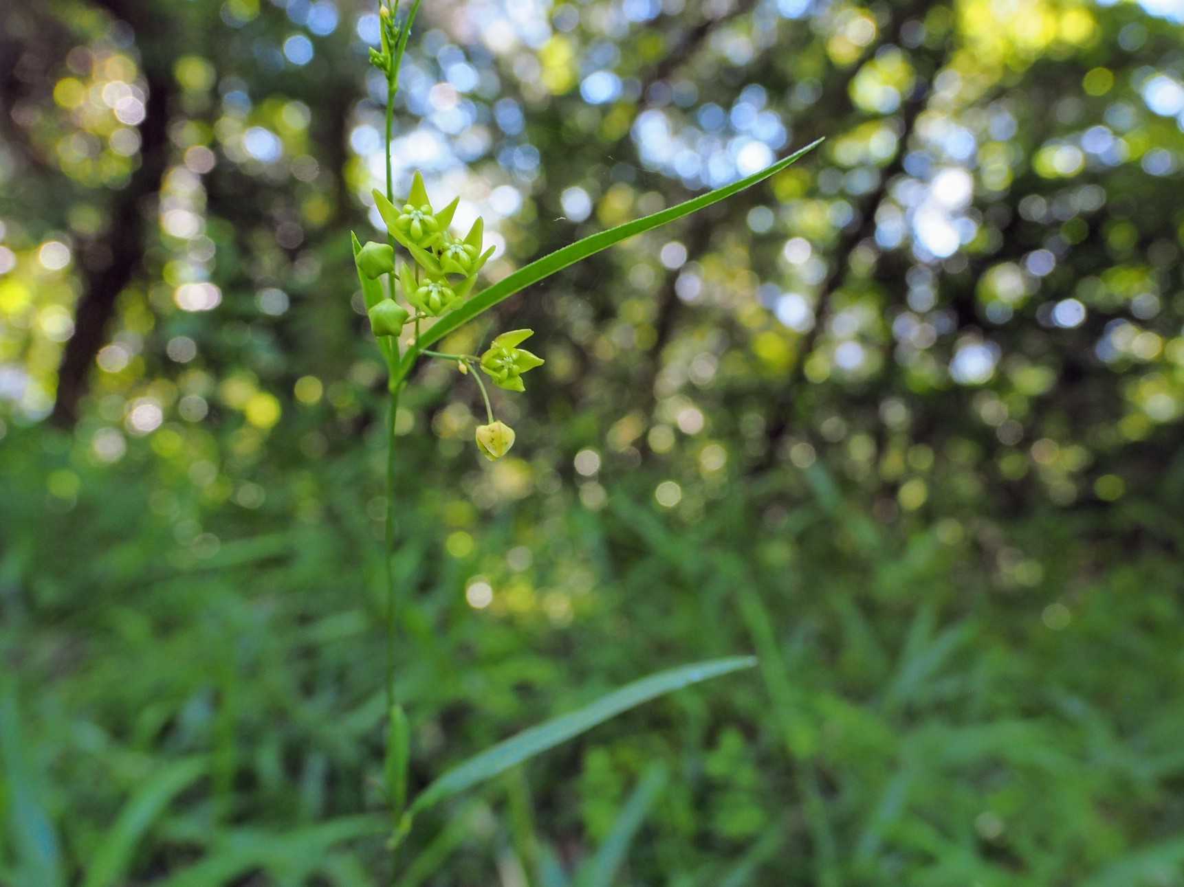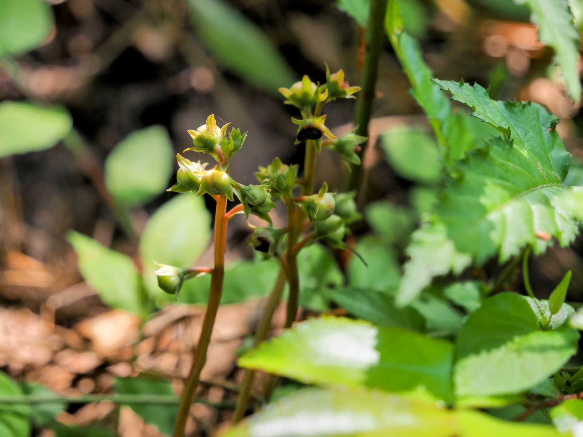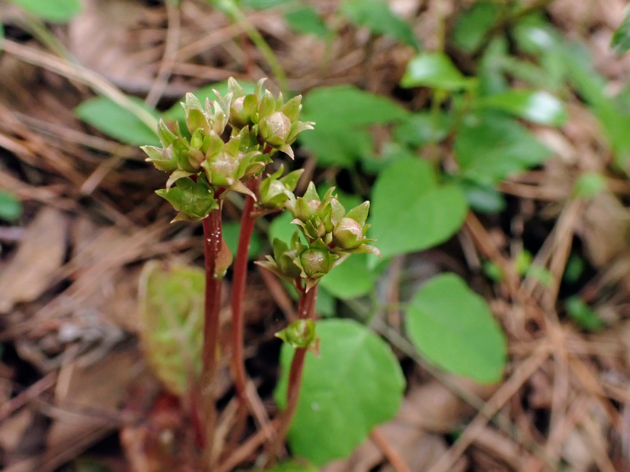 2025.6.8 牛頸山 キャンプ場下〜牛留広場 一薬草開花!! #51(2756)今朝は牛頸山へ、一薬草の観察に行くことに。8:12、キャンプ場下をスタート。天気は曇り時々霧雨、気温18℃、弱風。最短コースで一薬草の自生地へ。一薬草は?開花していた。花芽を見つけてひと月ほど。やっと花を見ることができた!一薬草 イチヤクソウ、ツツジ科イチヤクソウ属この一株だけ紅花一薬草他は全て白花もっと近づいて観察の後は、牛留広場でのんびり。今朝の展望戻りは、牛頸林道を下る。途中、出会った山野草など···靭草 ウツボグサ、シソ科花茗荷 ハナミョウガ、ショウガ科花筏の果実 ハナイカダ、ハナイカダ科ハナイカダ属黒蘭の新芽 コクラン、ラン科クモキリソウ属 目をつけていた株から真っすぐに新芽が伸びてきた。最後は、キャンプ場下の沢で一息。10:15、今朝の山歩きの終了。一薬草の花に会えて良かった!