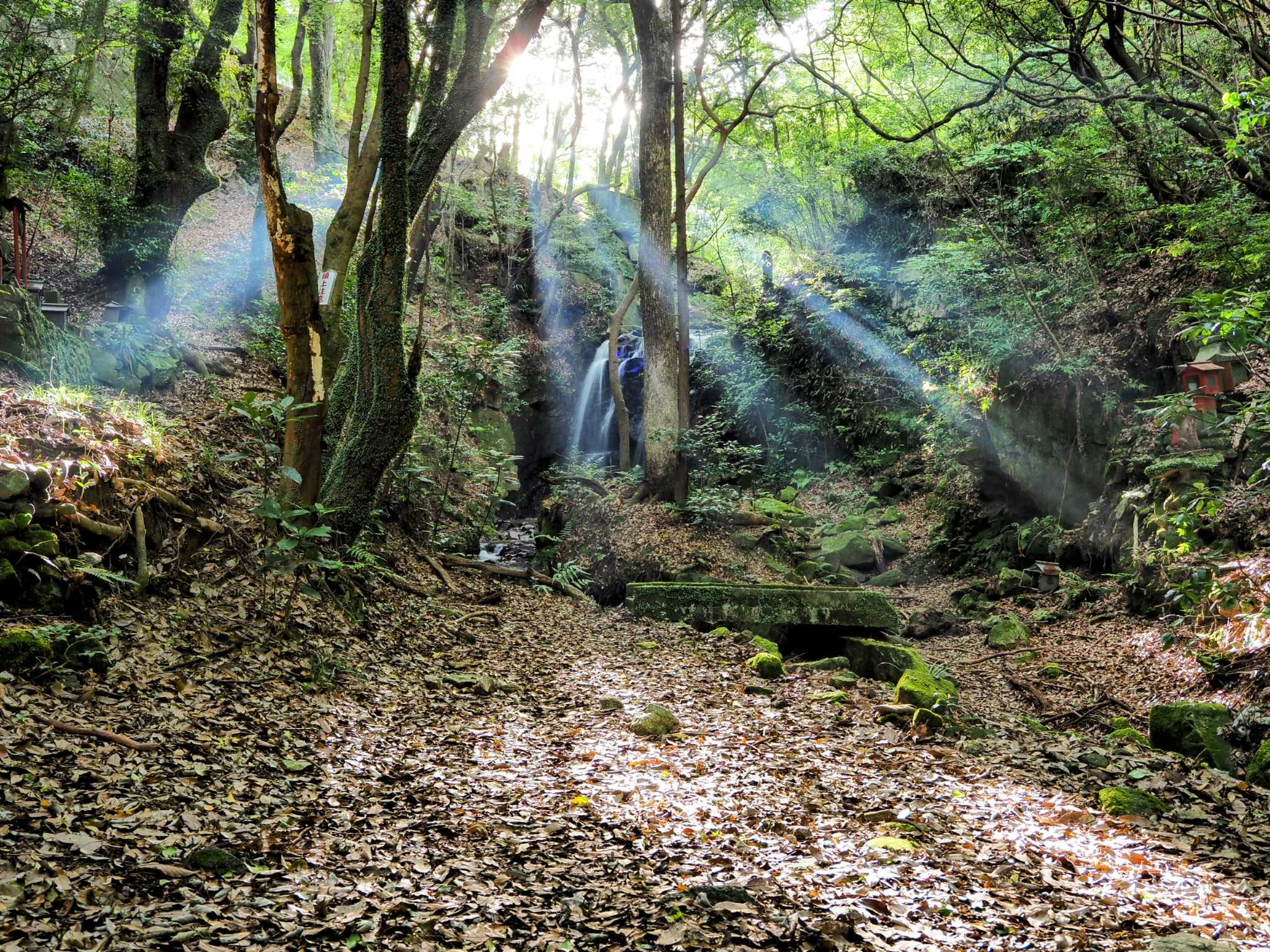 2025.7.12 四王寺山 悠久の森〜大原山 花散策 #60(2765)今朝は四王寺山へ。今回は悠久の森から大原山を花散策することに。6:53、悠久の森入口からスタート。天気は晴れ、気温27℃、弱風。まずは鮎返りの滝へ立ち寄る。ここからは、森の奥から谷間の田んぼに出て支尾根を上って主城原疎石跡まで歩く。今朝、出会った山野草···匙雁首草 サジガンクビソウ、キク科弟切草 オトギリソウ、オトギリソウ科飯子菜 ママコナ、ハマウツボ科藪萱草 ヤブカンゾウ、ツルボラン科 別名:忘れ草※ 夕菅、小葉擬宝珠、河原撫子は、まだ咲いていなかった。谷間の田んぼ道を振り返ると、右奥には若杉山の頭が見えている。支尾根を進んで途中の分岐から主城原疎石跡へ。草の生い茂る主城原疎石跡ここの北西側から車道へ下り、さらに車道を下って悠久の森入口まで歩く。8:03、今朝の山歩きの終了!