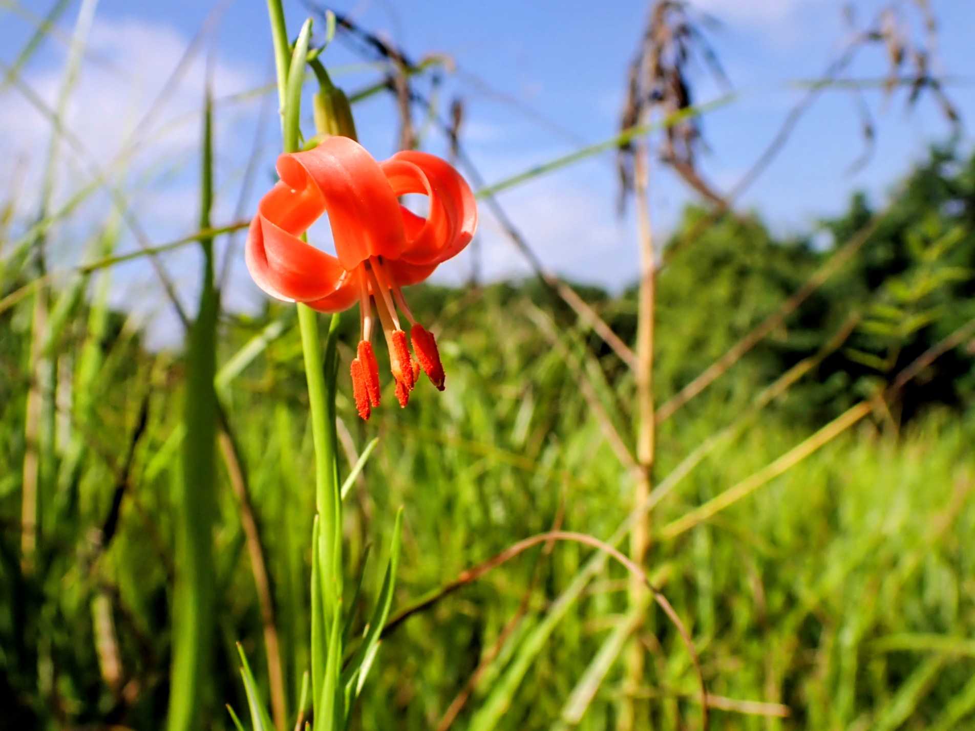 2025.8.13 三日月山 三日月霊園P〜山頂 ノヒメユリ開花! #73(2778)今朝は気になっていたノヒメユリの観察に三日月山へ。8:58、三日月霊園Pをスタート。天気は晴れ、気温28℃、微風。直登コースで山頂へ。歩き始めるとジワリ汗が滲む。ゆっくり登って行く。9:35、山頂。ノヒメユリは?咲いていた! 一輪開花。今年も会えて良かった。野姫百合 ノヒメユリ、ユリ科近くには、眩草の果実 クララ、マメ科山頂は日陰がなく暑い!今朝の展望···能古島と志賀島の浮かぶ博多湾を見下ろす。南には長谷尾根、その奥には四王寺山が微かに見えている。少し休憩した後、ファミリーコースをのんびり下ることに。途中、出会った山野草···馬之三葉 ウマノミツバ、セリ科水引 ミズヒキ、タデ科10:20、今朝の山歩きの終了!※ 先日の豪雨の影響は、三日月山は多少土砂が崩れていた程度だった。山頂で出会った登山者によると立花山(立花口登山道)の方は土砂崩れが数ヶ所あるとのこと。