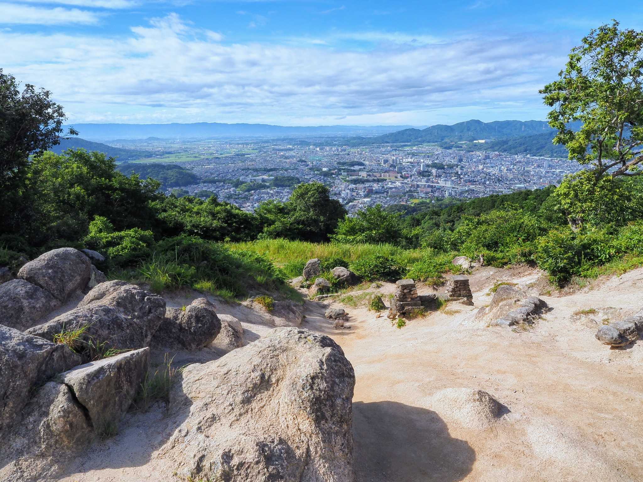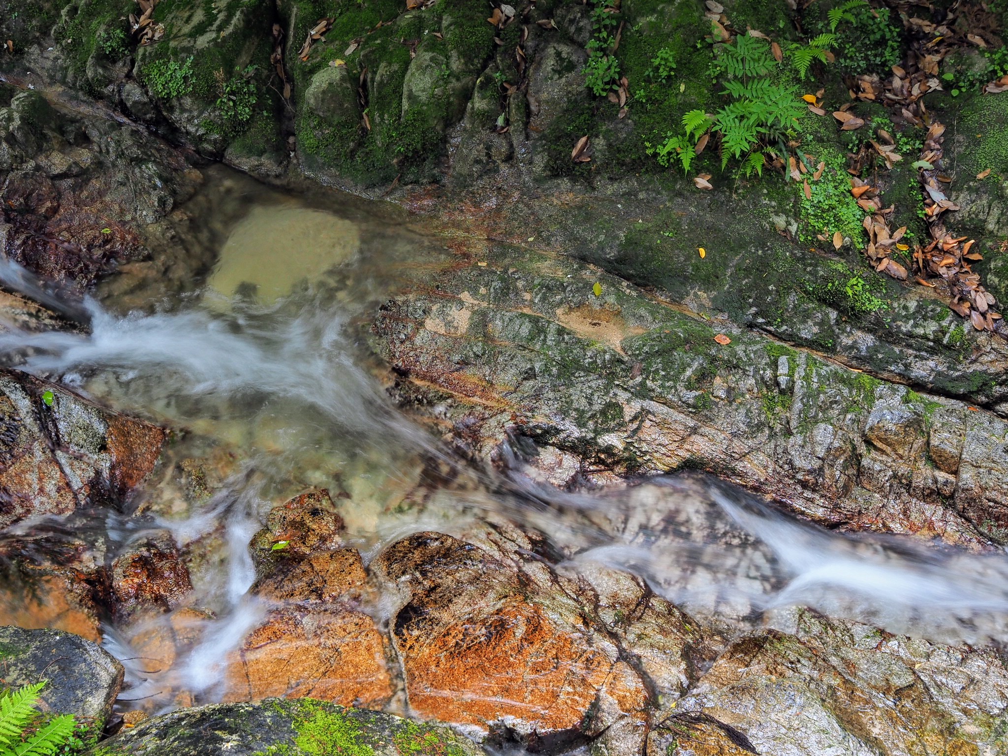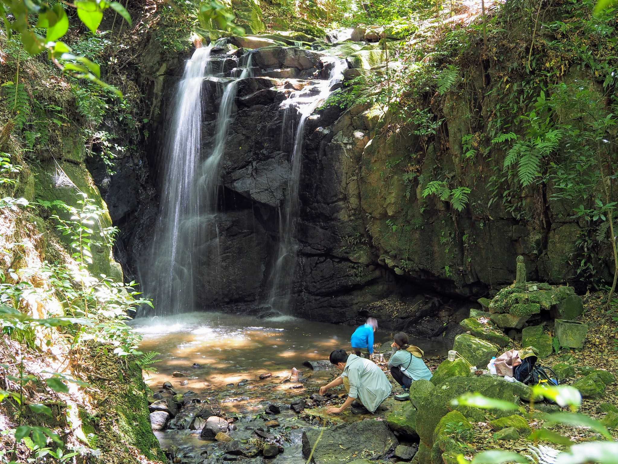 2025.7.27 四王寺山 悠久の森〜大原山 夏の花散策! #67(2772)今朝は、地元地下道清掃と家の用事の後、四王寺山へ。いつもより遅い11:00に悠久の森入口をスタート。天気は晴れ、気温33℃、時折強めの風。木陰を選んで歩いていく。まずは鮎返りの滝に立ち寄る。家族連れの登山者が遊んでいたので、離れた所から撮影。ここらは、花散策しながら、悠久の森の奥から谷間の田んぼ道を進んで支尾根に取り付き、途中からもう一本西側の北石垣につながる支尾根を進んで元に戻ることに。以下、今朝出会った山野草···小鬼百合 コオニユリ、ユリ科夕菅 ユウスゲ、ワスレグサ科溝隠 ミゾカクシ、キキョウ科車花 クルマバナ、シソ科鵯花 ヒヨドリバナ、キク科飯子菜 ママコナ、ハマウツボ科今朝の展望草に覆われた北石垣上部から若杉山〜砥石山最後は、北石垣から百間石垣方面へ急坂を下る。12:30、今朝の山歩きの終了!
