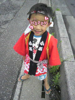 朝、早めに起きて、幼稚園で用意された法被に着替えて・・・