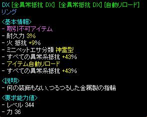 どうも僕です。一部装備が売れ、いつものようにギャンブルをしました。無事成功!!全異常DX2次転生指(ウィズダム)か全異常DX太極にしようと思ってましたが、チキン野郎なので逃げました。他のキャラでも使えるので、こっちで良かったんだと言い聞かせています。現状、転生指を導入しなければ指は5つ空きますが、つけるものが何もございません。<今後の予定>透明〇〇(借り物)⇒透明WRS太極orタートNソウルガード⇒全異常DXソウルガードTRSタートorTRS太極×3他のキャラも使用できるようにベースはタートがいいですかね。エーデルNxもいいですね。本来であれば薬回復を耳、全異常DXとノックバックを足に、首をジェノに変えたいですが、考えたらきりがありませんね。自作ではもう限界に近いので、これからは鏡頑張ります!!と言いたいところですが、非常に面倒くさい・・・。まったり楽しもうと思います。サブ用にハード欲しいっす。ではまたノシ