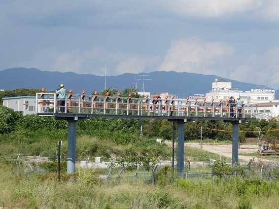 ちょうど点検作業中で、進入灯上には作業の方がいた。