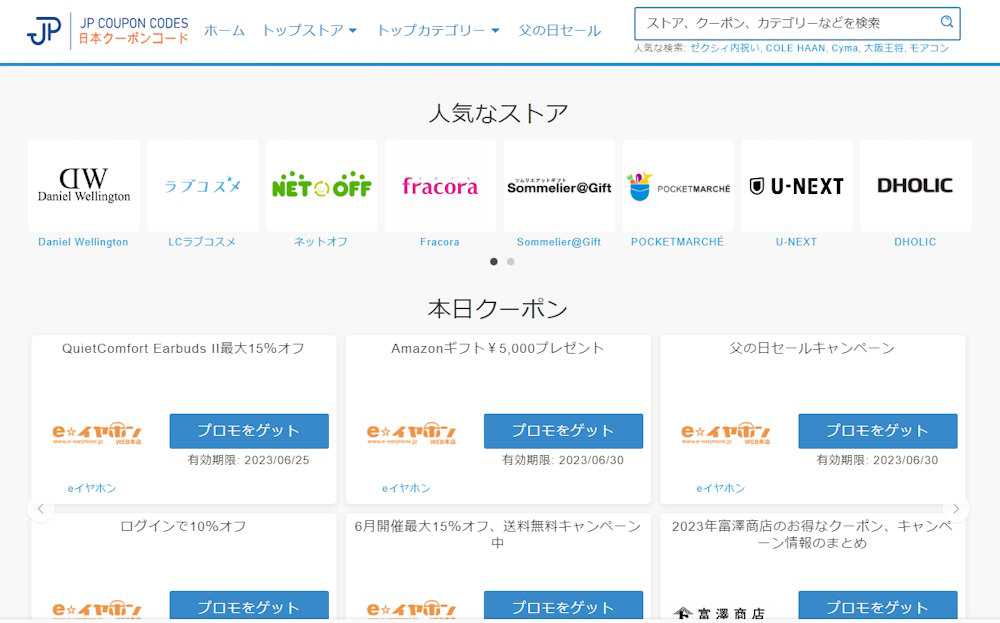 JPCouponcodes には現在 1000 以上のストアと提携して、この数は日に日に増加しています。 ユーザーは 安心 してクーポンを 検索 し 、伊達 のくらの 食品割引 や SANWA の 電器割引 などで 父 の 日 のご 準備 にお 得 に 買 い 物 をすることができます 。