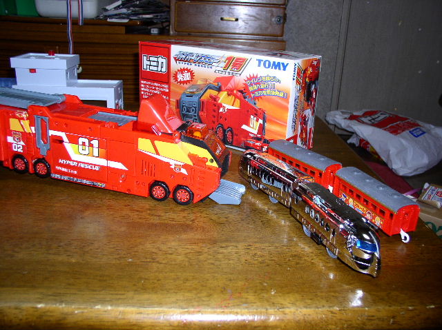 今日で冬休みもおしまいいっせいピョンは風邪をひいていたのでどこにも行っていなかった“ちち”がお昼前に帰ってきて「トミカへ行くぞ!」????何?何?急に・・・・・車に乗り込み、途中でお弁当を買い、トミカのイベント会場に着き、車の中で昼食そして“ちち”が「バイバイ(^^)/~~~」(“ちち”は車の中で仕事をするようです)“はは”といっせいピョンは飛び跳ねて?会場に向かいましたついて・・・・しまった「プラレールだった・・・」それでもいっせいピョンはご機嫌!!動く電車を見て嬉しそうゲームにも参加して銀色のラピート獲得(大当たり)これが2回も続けて獲得しましたゲーム代¥800で2個も大当たり(にっこり)そしてお目当ての販売コーナーへハイパーレスキューの1号ありましたいっせいピョンはほしくて、ほしくて探していたけど・・・見つからなかったおもちゃですやっと合体が出来満足のいっせいピョンですしかし2時間の冬休みの思い出作りとは・・・・・“ちち”の優しさかな?