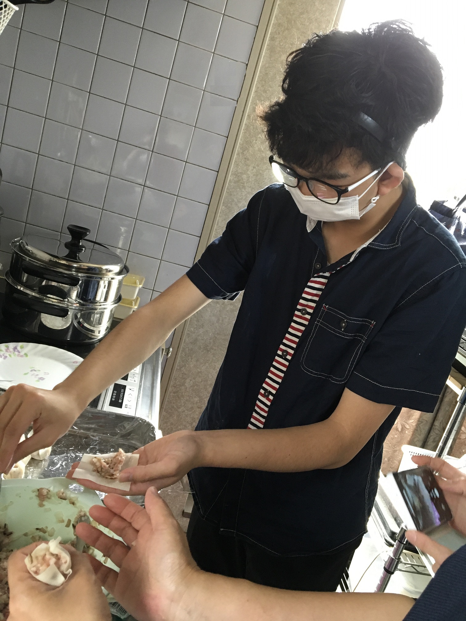 ”はは”が作った焼売の種???いっせいピョンが焼売の皮の上に肉を置いて焼売の形に包みますリハビリです上手に???形がバラバラでも美味しくいただきましたにほんブログ村にほんブログ村