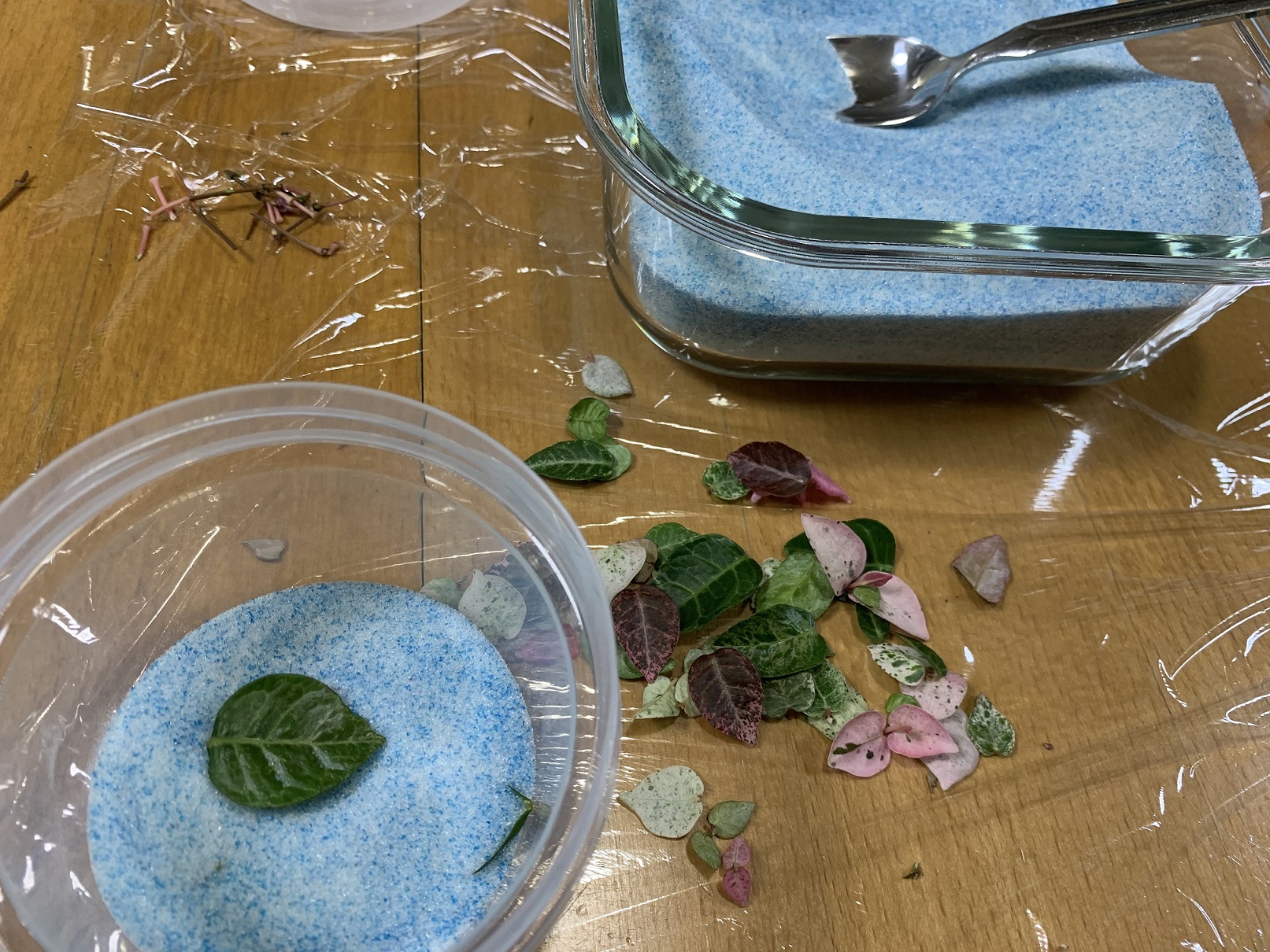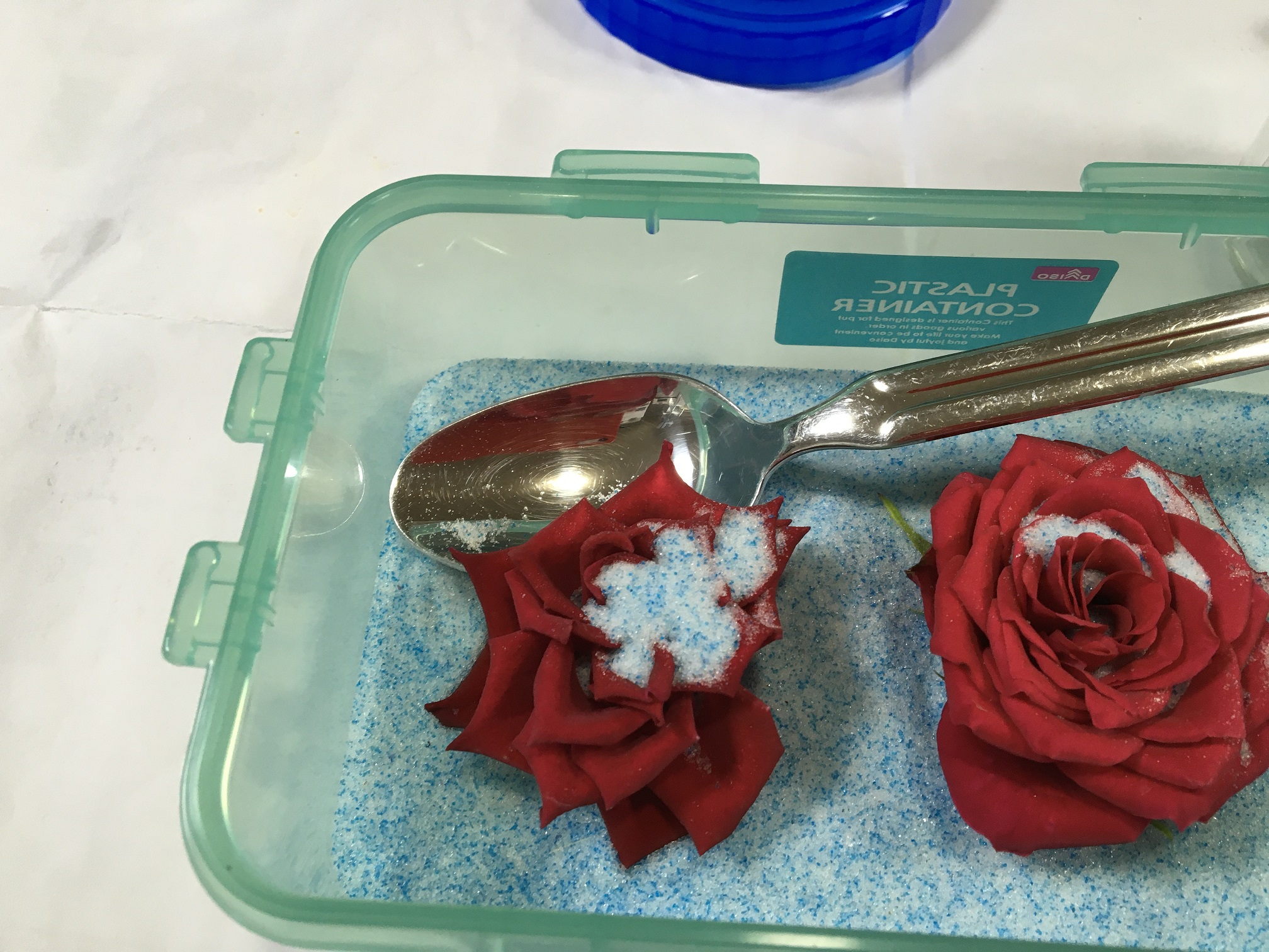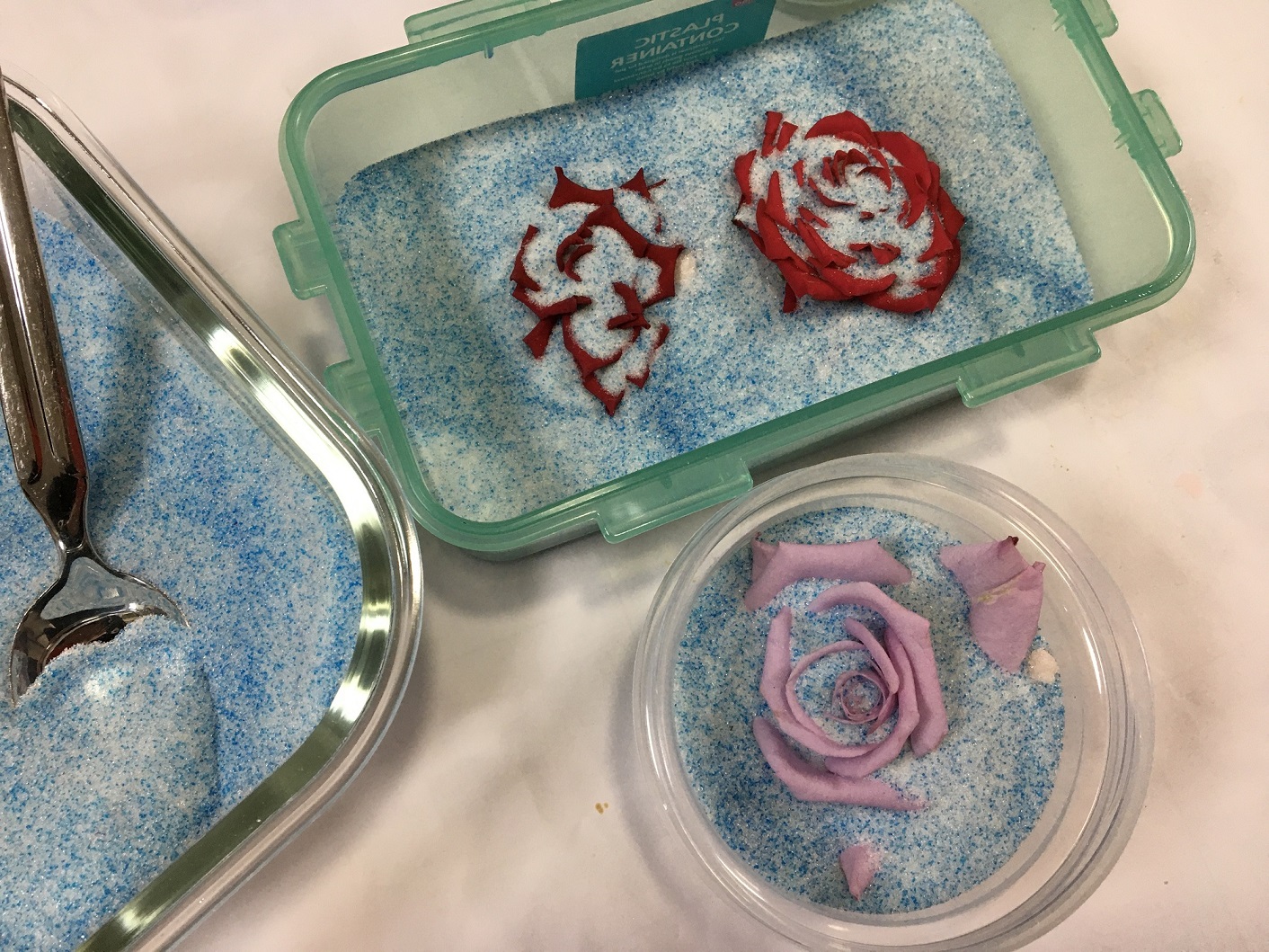 シリカゲルを花の周りから入れる時 スプーンが便利です