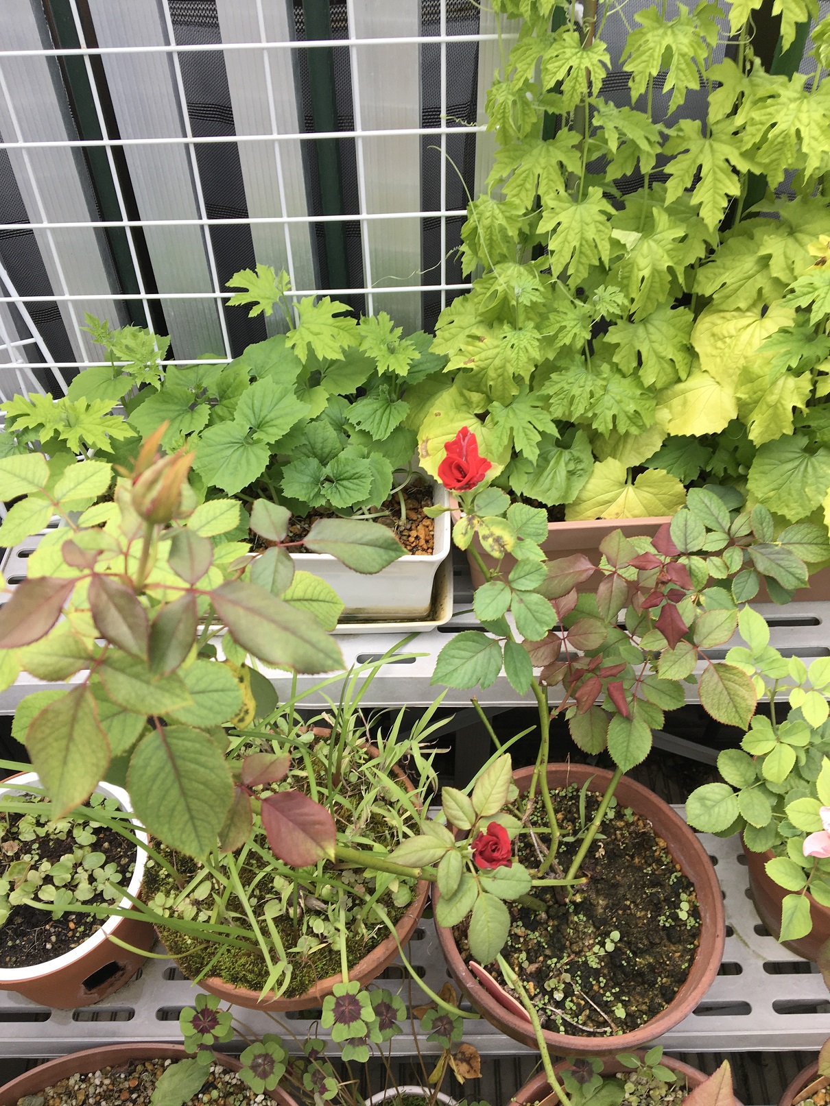 黄色のミニ薔薇は我が家のベランダで咲きました