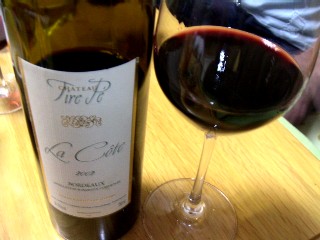 ch.ティレ・ペ・・・何やらP氏絶賛のスーパーデイリーワインらしい。第一印象は、P氏はこうゆうの好きだっけ?って感じの酸バランス。黒のタイトスカートなイメージで酸味を美脚にして、バランスを布のようにまとってる。全体的にシャープな印象。2002年は、こうなのかも。2日目は、タイトスカートのスリットが少しづつ広がり、まとまっていたバランスが解けて酸味の中にあったタンニンが、渋味として別のものとなった。2000円のワインでは、良く出来ていると思う。