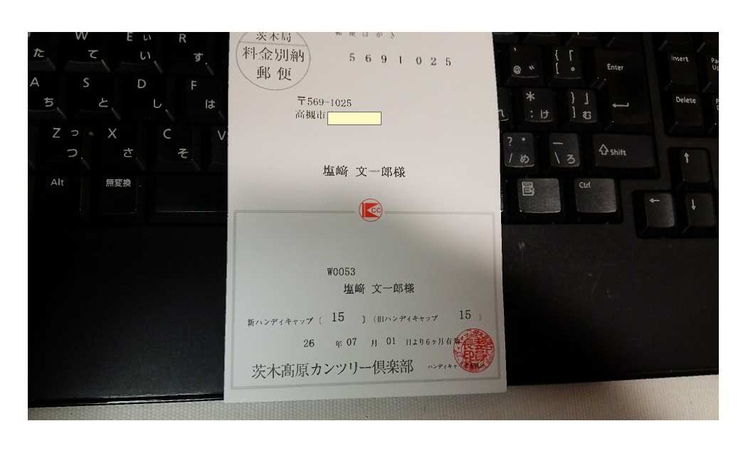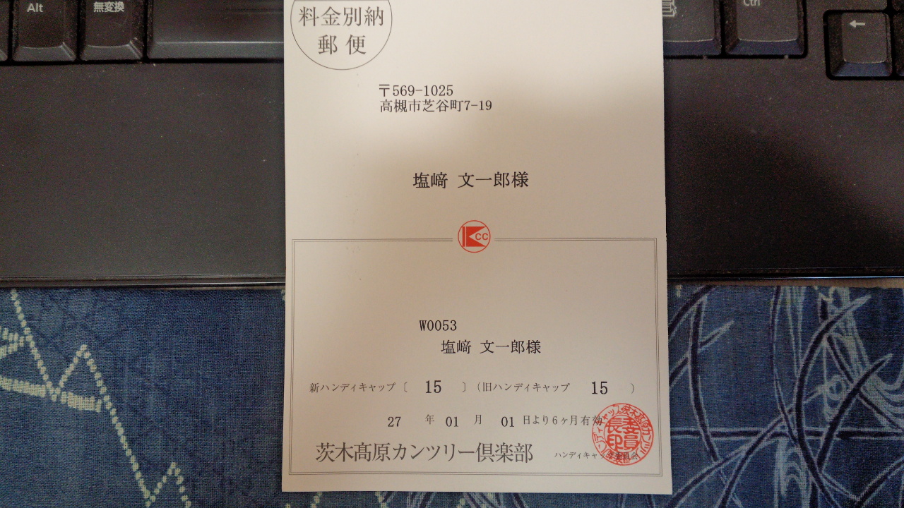 倶楽部からハンンディキャップの通知がきました!『15』変化無し!!今年1月に15になりましたが半年経って進歩無しです。この2年で24から15まで一気に上がりましたが、もう、“限界!”かな?まー一旦、休憩!!と言うことにしましょう。15で十分!下がらないよう勉強します!