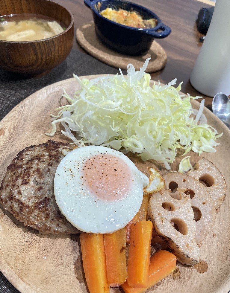 冷凍ハンバーグで、チャチャッとハンバーグ定食ぺろり