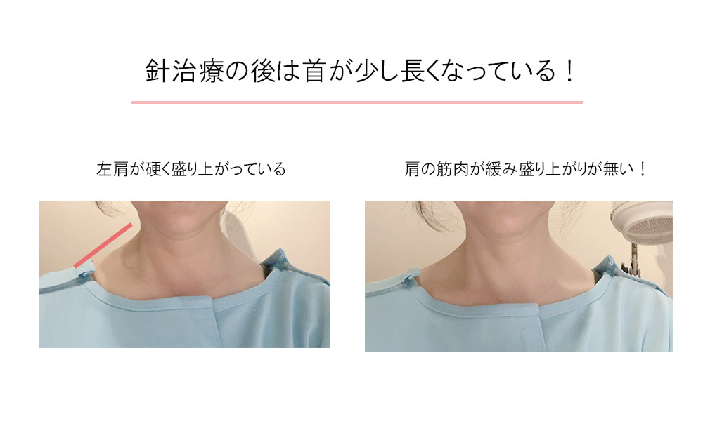 先生にいわれて初めて気づいたのですが、針治療の後は首が長くなっているんですびっくり