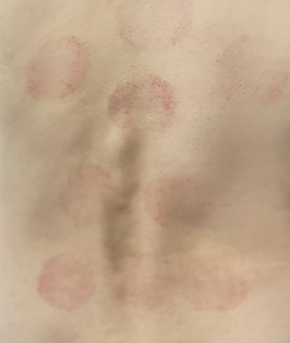 背中に数か所、少しだけ跡が付いたけれど痛みは感じない