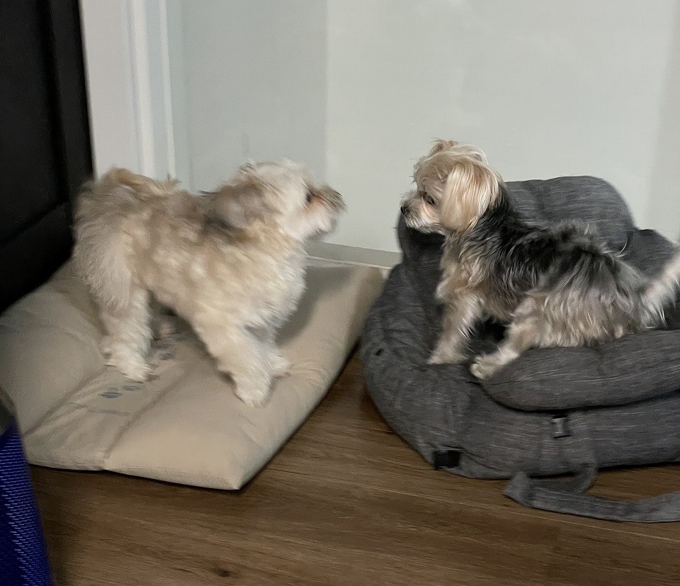 段々、上下関係ができてきた 多頭飼いわんこ先に我が家の子になったのは、マルチワのジル 2歳そして、1年後にやってきた、マルヨーキーのピノ 1歳ピノはジルより1周りほど小さいのにとても気が強い・・・そしてジルに偉そうに吠えるのです最初から、そんな感じはありましたがもう今となったらピノが主ジルがくつろいでいると、そろーーっと近づき襲う「げっ、何、やめてーー」「あかーーん」「何があかん?」毎日毎日、ピノからけしかけて、争いが始まる・・・へへっ、私が王様じゃ怖すぎる・・・皆さん、多頭飼いわんこの上下争いってどんな風に見守ってますか解決策があれば教えてください