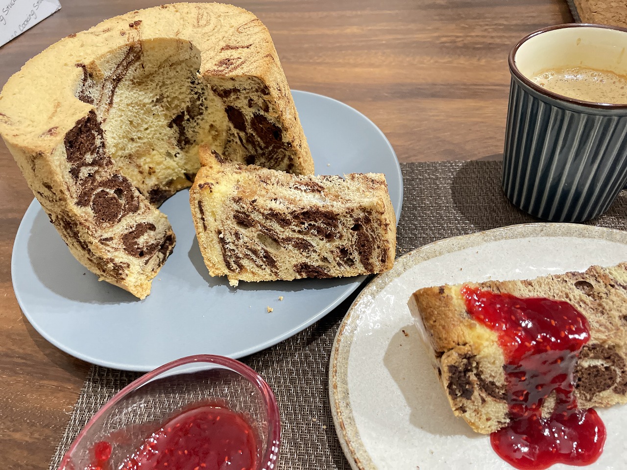 米粉でショコラマーブルシフォンケーキを作ったよ久々のクッキング今回は、米粉100%で作る、グルテンフリーのシフォンケーキ米粉100%なので膨らむにくいと思われますが、想像よりもしっかり膨らみました型に入れると、結構気泡が保たれたまま9割まで生地が入ったので先生にとても良い満点といわれて嬉しかったプレーン生地とショコラ生地をマーブル状にして焼き上げ、アクセントとして「ベリーソース」を添えていますしっかりと膨らんだよ米粉100%で作ると、普通のシフォンケーキのような、プシュワーーっていうふわふわ感がなく、柔らかめのスポンジケーキのような感じでしたがとても美味しかったあっという間の楽しい時間でした