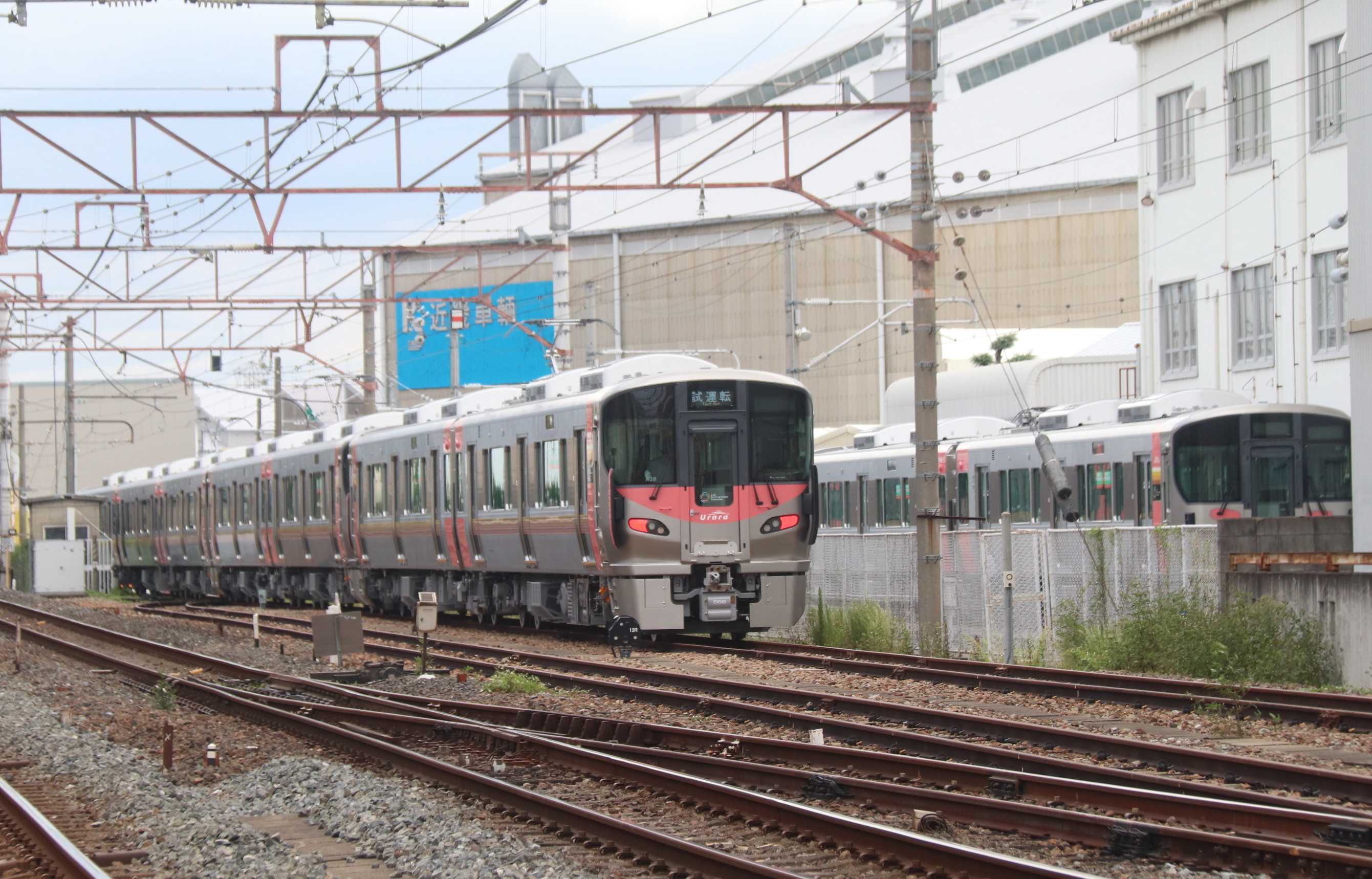 本日、近畿車輛からJR西日本の227系500番台岡山車『Urara』が出場しました。出場したのはR24+L34+L35の8両編成。また、近畿車輛では8月に出場する227系500番台も確認出来ます。8月に出場する227系500番台は7両編成でR25+R26+L36。9月に出場する227系500番台も確認出来ています。<1>炎天下の中、JR淡路駅で撮影しました2025年上半期の227系500番台の出場も9月で終了。2026年製の227系500番台の製造も本格的に始まりました。スポーツクラブ横の570番台2連車から建屋内に運びこまれています。