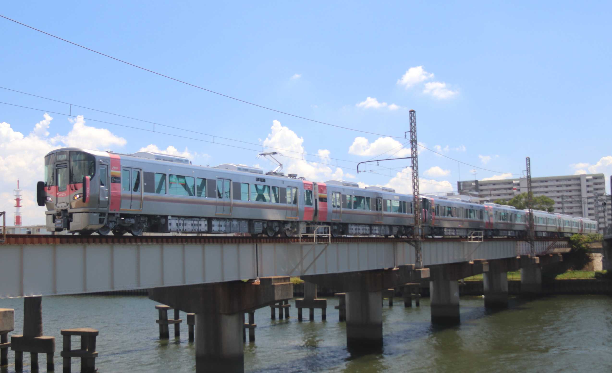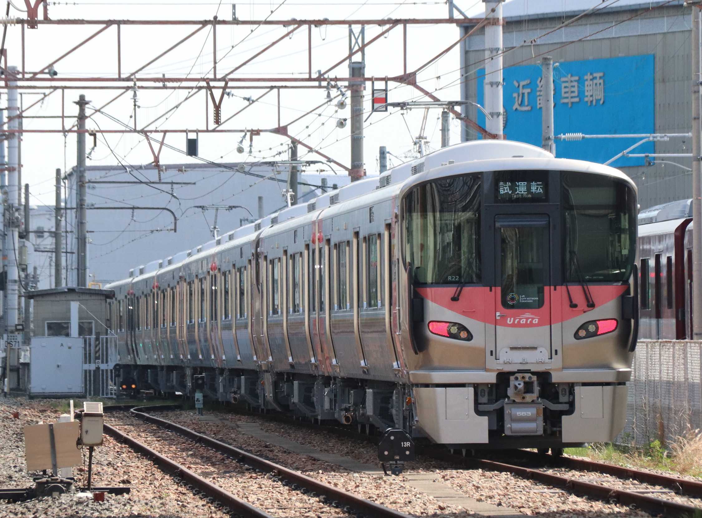 本日、近畿車輛からJR西日本の227系500番台『Urara』岡山車が出場しました。出場したのはR25+R26+L36の7両編成。<1>神崎川を渡る227系500番台<2>近畿車輛では次の227系500番台の組成が始まりました9月初旬に出場する227系500番台は8両編成でR27+L37+L38。試運転付近には9月中旬に出場する227系500番台がいます。R28+R29+L39の7両編成。この2回で2025年度上半期に出場する227系500番台は最後。建屋内にも227系500番台が確認出来ます。