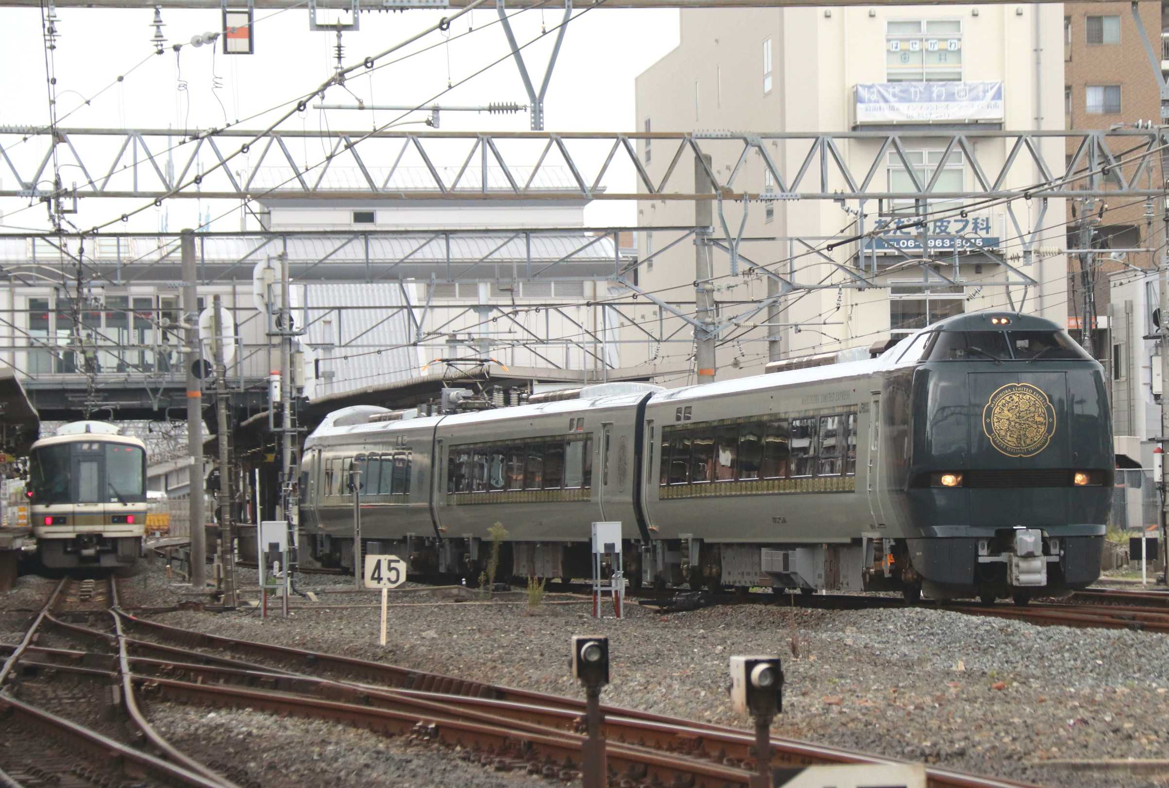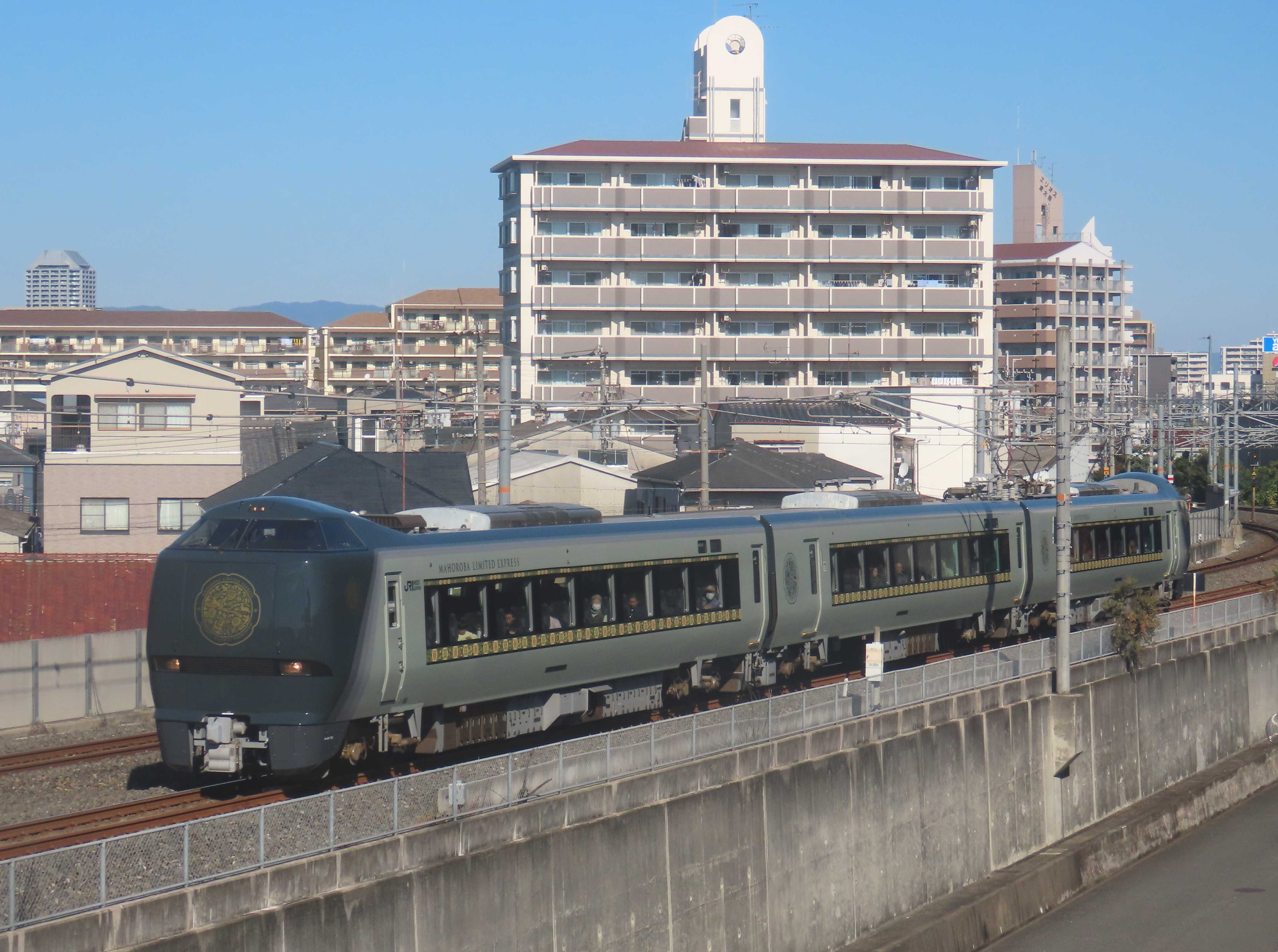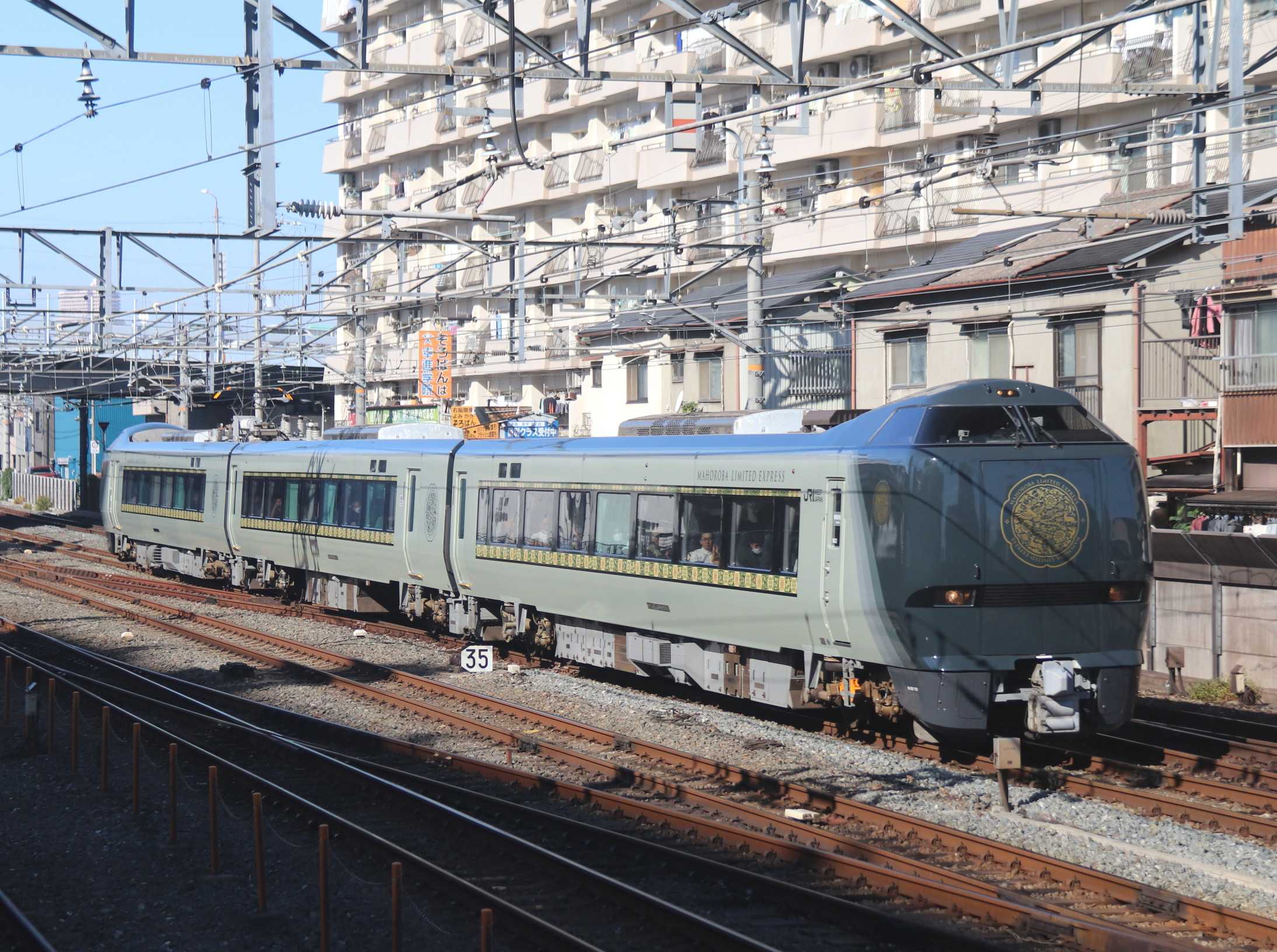 特急『まほろば』には「安寧」と「悠久」が週替わりに使用されているのでしょう。今日は「悠久」が使用されていました。<1>放出駅構内を通過する『まほろば』悠久「悠久」10/18,19、25、11/2,3,15,16,29,30「安寧」10/26、11/8,9,22,23