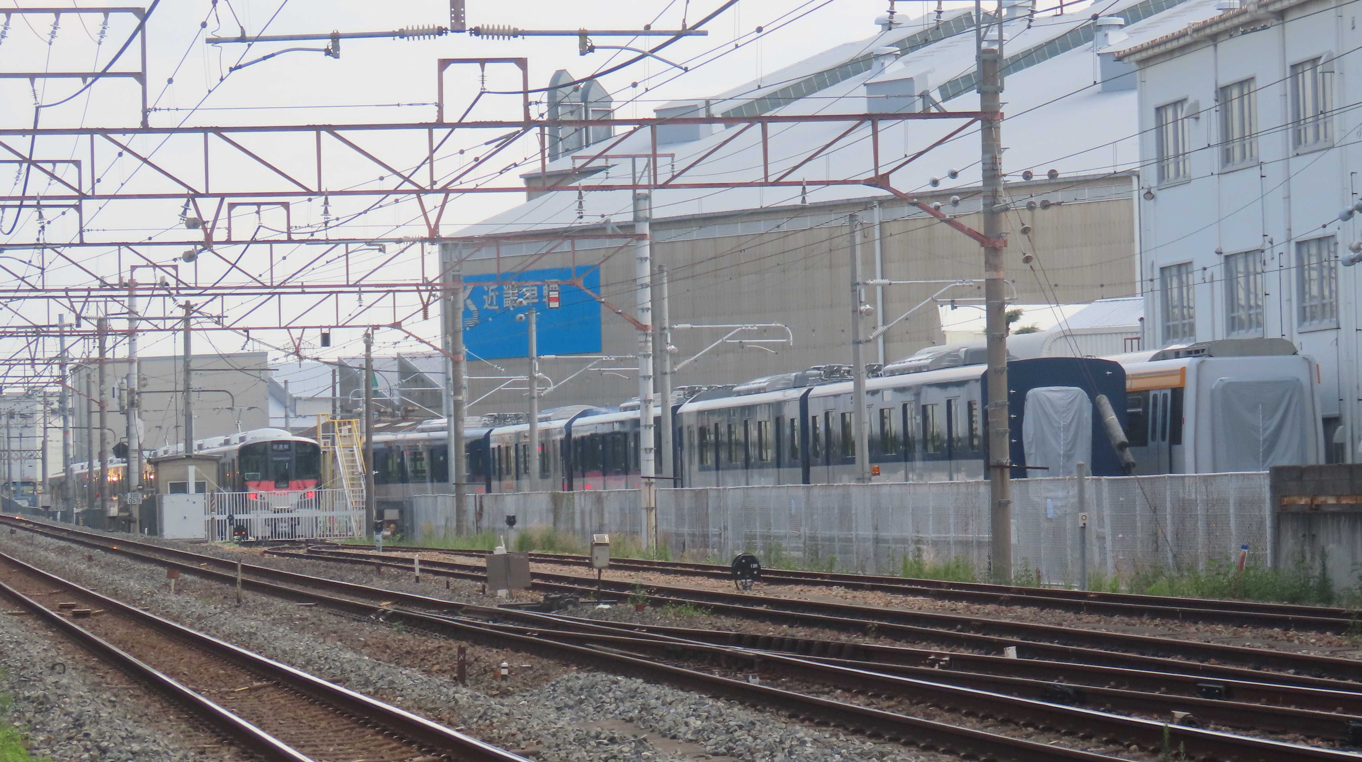 近畿車輛では来月早々に出場する伊予鉄道の7000系が出てきています。今回出場するのは3両編成+3両編成で、近畿車輛基準に吹田方より7504+7104+73047503+7103+7303また、試運転付近には227系500番台の6両編成が確認出来ます。確認出来た車番から推測するとR31+R32+R33かも知れません。7000系が出た後、組成されると思われます。近鉄の1A系第5編成も確認出来ます。<1>徳庵の踏切から