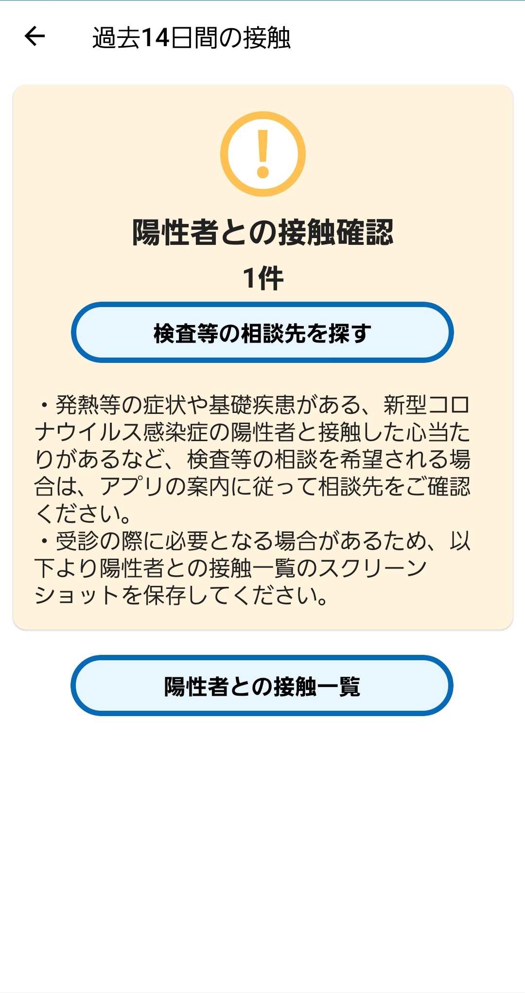 18日に、はじめて接触確認アプリCocoaの通知がきました。