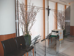 3つ年上で、私にとっては姉のような存在の友達の結婚式へ行って来ました。銀座だったのですが、風が」ものすごく強く、私はトロリーバッグを持って行ったのですが、バッグが吹き飛ばされるくらいの風でした。一緒に行った友人は風に押されて、植え込みに足を突っ込んでしまっていました(^^;)とても綺麗な教会、披露宴会場でした。私は式で演奏を頼まれていたので、普通の席ではなく、前の方で参列者の方を向いて座っていました。牧師さんがとても面白い方で感動的なお話をしてくださって、新婦が涙している時に「変な牧師、略してヘボがこんなことを言っていたなぁと思い出してください。」と言うような落ち(?)をつけていて、その後演奏が待っている私は笑って吹けなくなるのでは?!?!と心配でしたが、無事に演奏することができました\(^-^)/♪披露宴では普段お目にかかれないような料理が多く、またそれが美味しかったです(*^_^*)コーヒーサイフォンでキノコスープがみんなの前で抽出(?)されたり、サーモンが焼かれたりしました。デザートの時は場所を移動してビュッフェスタイルで好きなものを取ることが出来ました。お腹いっぱいになりました。余興やスピーチなどのないシンプルな披露宴でしたが、2人が幸せそうで、とてもよかったです(^^)新婦とは4月に一緒に海外旅行へ行きます。新婚旅行はゴールデンウィークだそうで、旦那さんよりも先に私が一緒に旅行へ行ってしまいますv(^-^)2次会では、一緒に参列した友達の子供や久々に会う友達がいたりして、これまた楽しく過ごせました、風が冷たい一日でしたが、心はポカポカでした♪♪