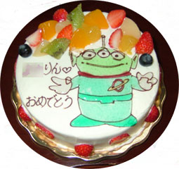 本日、私のために誕生日会が行われました。。。なんて。。。実はバイトのお疲れさま会&異動の方の送別会だったのですが、ついでに私の誕生日もお祝いしていただきました。飲み会に行く前に自分のミスが原因でとてもショックな出来事があり、行こうかどうしようか相当迷いましたが、事前に私が誕生日であることを宣伝したのにドタキャンというのも難ですし、きっと行ったらショックもやわらげられるかなぁと思い、行くことにしました。結果。。。終始笑いの絶えない面白い会でした。ついでに、送別会というよりも、私の誕生日がメイン??というぐらいにお祝いしていただき、おかげさまでショックもやわらぎました。以前、飲み会の話になった時に友達が「美欧羅ちゃん、エイリアンが好きだからエイリアンのケーキ用意するね!」と言っていましたが「えーそんなのあるの??」と半信半疑でした。そして、「美欧羅ちゃんの夢を叶えたいと思います!」と登場したのがこのケーキです↓↓エイリアンの絵の部分は食べるに忍びなかったのか、会の最後にも残されており、私がお持ち帰りさせていただきましたv(^-^)ちなみに、プレゼントにTOYCameraやエイリアンのパンツ(笑)をいただきました。みなさまに感謝感謝です!!!!大勢の方にお祝いしていただけて本当に嬉しかったです☆「抱負は?」とのことでしたので「変わらず、体力バカを発揮して突っ走りたいと思います。これからもよろしくお願いしますっ!!m(_ _)m」と大きな声で述べました!普段は本社の方にいらっしゃる(?)上司も参加されていたのですが、酔っ払いっぷりは相当で、かなり面白い人と化していました。そんな上司に「はい、あーん!」とケーキを私が食べさせてあげました(^^;)一日の締めくくりが非常に楽しく最高でした!!!!よい一年が送れることを願います☆彡