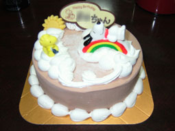 昨日はバイト先の方々に誕生日をお祝いしていただいたのですが、今日は家族にお祝いしてもらいましたv(^-^)今日のケーキはアイスケーキです(^^)私の父親は家族の誕生日や年齢など一切覚えないタイプの人で、私の誕生日は今日が当日なのだと思ったようです(^^;)二日連続のケーキは甘い物好きの私にはたまらなく嬉しいです。毎日誰かの誕生日でケーキが食べられればいいのに。。。と思ってしまいます(笑)。