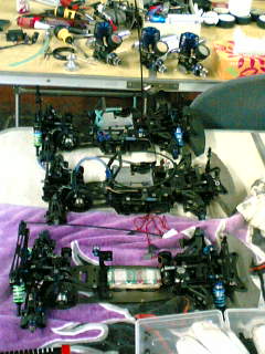 今日は朝からお店でメンテしてました。メカ類のダメージは今回の雨でかなり出てますね。真ん中のRRRが自分ので他2台はJ&K店長の物です。運の悪い事に私のエンジンやはりダメみたいです。原因は水ヾ(*゜ο゜)ノオォォォォーーー!!スリーブ内で水を叩いているみたいで圧縮無いです。2週間でパーになりました。他サーボ受信機・・・この悔しさ和歌山に持って行きますΣ( ̄Д ̄lll)・・・・あと、たどパパさんそちらに遠征行きたいのですがどちらで練習されてるのでしょうか?行くとすれば平日なのですが・・・店長と行きます。m(´-ω-`)m ょろしゅぅ♪