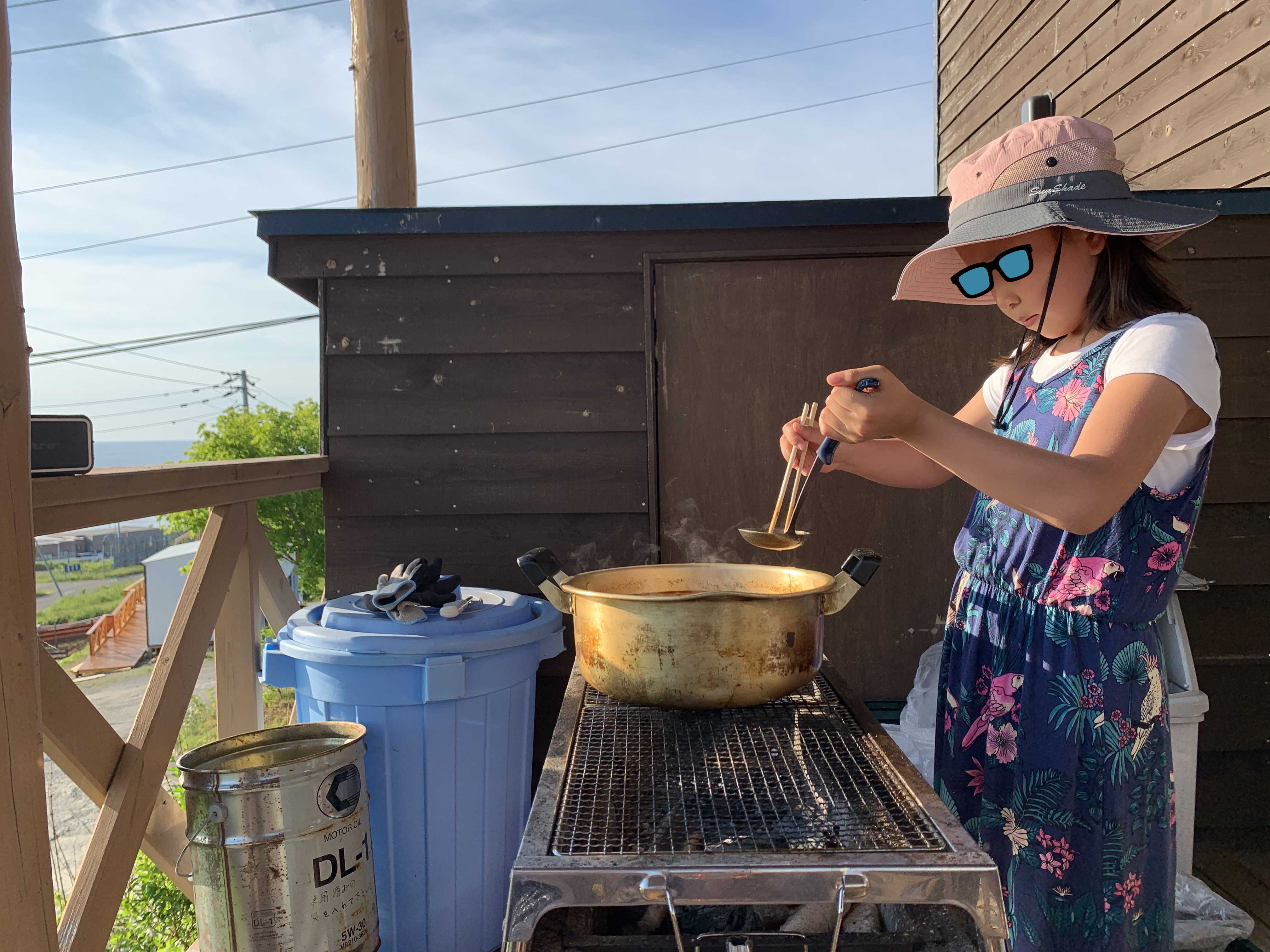 2日目の早朝写真なのでパジャマ姿の娘(笑)