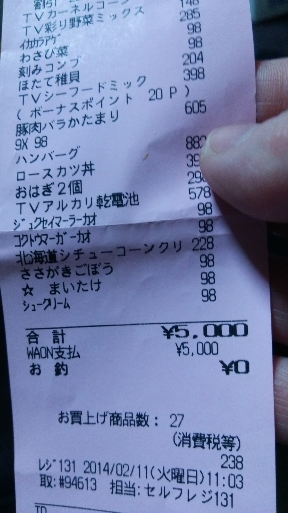 大したことではないのだけど、先日、スーパーで買い物をしたのですが、レジでお金を払う時「5000円です」って言われたのですなんと、合計が5000円ちょうどになったのでした計算しながらなんて買い物など出来ないから、全くの偶然なのです特別、金額がきっぱりになったからと言って、何か良いことがあるわけじゃないけど、ちょっとハッピー宝くじでも買おうかな宝くじジャンボ開運クロス vol.1