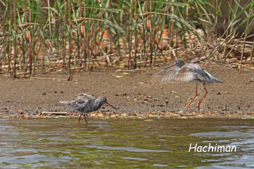 呉崎の調整池にはいろんな野鳥たちがやって来ますが、今回はツルシギの番の中にセイタカシギが入っていました このポイントは遠いうえに背景が良くありませんがツルシギの番 今回はセイタカシギの番も一緒に餌を獲っていました そのうち雌が砂浜に座り込んでしまいました 暫らくして1羽が飛び出して行きましたがすぐに帰って来ます 此方の砂浜ではオオバンが4羽来て何かもめていますオオバン posted by (C)Hachiman