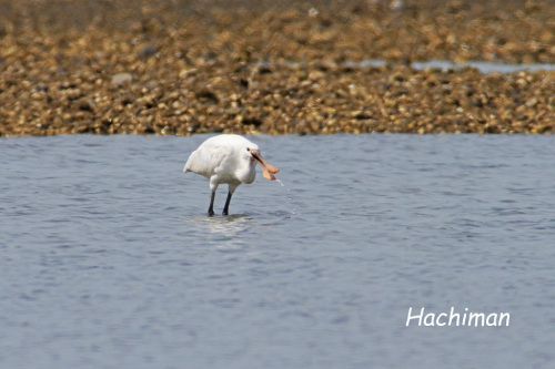 昨日出会った野鳥で2年ぶりかなヘラサギとの出会いは、1羽だけで寂しそうに干潟の餌を探していました。 嘴の色はこんなものだっかな少し明るい様な 1羽だけですので何時も周りを気にしています ダイサギなどが近づくとすぐに飛び立ちます 少し離れた所まで飛んで餌を探しに行きますヘラサギ飛翔2 posted by (C)Hachiman