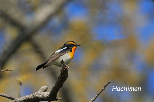 今年も志高湖にもキビタキがやって来ました今日出会った個体は綺麗な雄で盛んに囀って餌を獲っていました。 かなり近くまでやって来てくれました 空抜けですが青空でしたので綺麗な色です 後ろからのショットです 近かったのですが大きな枝の向こうで上半身だけで右向き そして今度は左を向いてキビタキ4 posted by (C)Hachiman