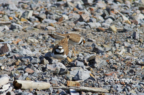 海岸の砕石の中でコチドリ達が巣作りの準備をしていましたこの中でじっと動かないと見つけにくい、本当に保護色ですね このあたりで良いかなとアピールしています 巣の具合はどうかな~と確認 雌かなお尻を高く上げています 雄が上になろうとしています 何度も座って見て感触を確かめていますコチドリ4 posted by (C)Hachiman