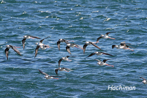 先日 夜半からの強風の吹き荒れた朝 鳥友のSさんからの情報で何時もの海岸にセイタカシギの群れが来ているとの事ですぐに駆けつけ一緒に撮らせて貰いましたその後大勢の鳥友が駆け付け大賑わいでした 海上を群れで飛ぶ セイタカシギ全部で16羽います 強風の中 編隊を組んで飛んでいます そのうち近くの砂浜に降り立ちました 頭上を綺麗に並んで飛んで行きます 突風の吹く中海面近くを飛ぶセイタカシギセイタカシギ5 posted by (C)Hachiman