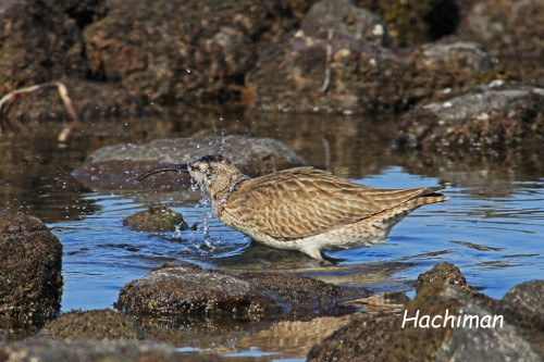 先日のキョウジョシギの水浴びのとき近くでチュウシャクシギも水浴びを始めましたのでその様子をちょっと紹介します。 近くの潮だまりでチュウシャクシギも水浴びを始めました 近くでキョウジョシギが様子を見ています 水浴び後羽を広げて水を切っています 近くに居たキアシシギも様子を見に来ました 近くに来ましたが走るのが早い イソシギも近くまでやって来ましたイソシギ posted by (C)Hachiman