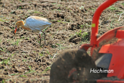 先日 用事で日出町を通った時トラクターの後を付いて回るチュウサギやコサギの中に1羽だけ綺麗な婚姻色のアマサギがいましたので撮って来ました トラクターで土を耕した後に出てくる虫を獲っているアマサギ 何か出ないかな~と首を目いっぱい伸ばしているアマサギ 何か見つけると素早く餌をゲットしています アマサギもアップで見るとかなり怖い目をしています 土の上で何か動いたと思ったらタヒバリの若の様です、 まだ嘴の黄色が見えますタヒバリ posted by (C)Hachiman