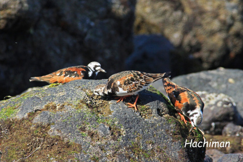 昨日何時もの海岸をチェックしていたら沖のテトラから何か飛んで来たので確認して見ると綺麗な 夏羽のキョウジョシギが5羽で 岩に着いた海藻をついばんでいます。 そのうち小さな潮だまりで水浴びを始めました 暫らくして水から飛び上がり 此方でも水浴びをして 石の上に上がって羽を広げています 此方でも水からジャンプして飛び上っていますキョウジョシギジャンプ posted by (C)Hachiman