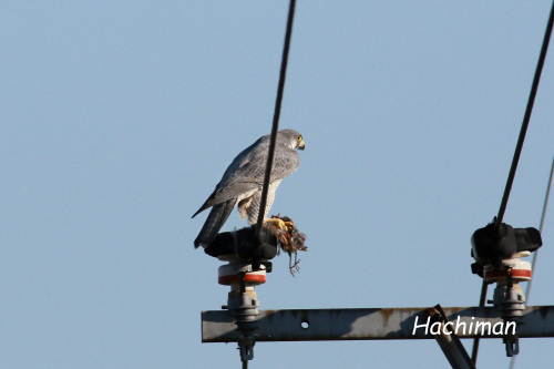 昨日の続きで、今回は強そうに見える猛禽類の最近の様子を少し 狩りはうまい ハヤブサ(隼)ですが、折角獲物を仕留めても ゆっくりとは食事をさせて貰えないようです すぐにカラスが近づいてきて電柱から撤退しています 此方は大きなボラを獲って電柱に来たミサゴ(鶚)は食事中 何か気配を感じたのか上の方まで引きづり上げています やはりきましたカラスとの、激しい睨み合い まだ近づいてきますが、このミサゴは激しく威嚇していました とうとうカラスを追い払いその後は悠然と豪快に食事中