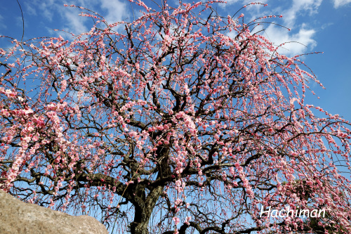 南立石公園の梅もほとんど満開状態になっています。その梅の一分を 入口近くの枝垂れ梅は今が一番の見頃です もう一本の枝垂れ梅も 此方の豊後梅もいい香りがしています 鮮やかな紅梅も咲き誇っています 幹の付け根に咲いている花2輪 此処に一本だけ咲いている河津桜の花も