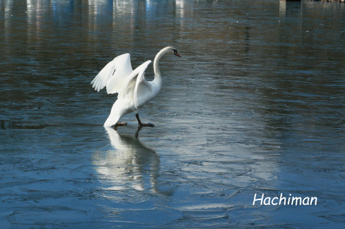 朝起きると、かなり冷え込んでいたので 志高湖の氷はどうかと行って見ました着くと湖の半分ほどが凍結して、雪がなかったので綺麗な模様が出来ています 白鳥達も氷の上では足元が滑って大変そう 羽でバランスをとりながら少しづつ進んでいます 氷の表面には綺麗な模様が出来ていますこれはガラスみたい もう1枚 此方は鱗模様の形で 綺麗な模様に白鳥の羽毛が一枚