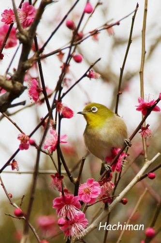 今年の梅の様子を見に T公園を覗いて見ました梅は大分咲いていますがメジロは少ないようですが一応恒例のウメジロを 紅梅に来てくれたメジロ 此方の豊後梅に来たメジロは寒いのかダルマ状態 この子は枝先に来て盛んに蜜を吸っています 此方の枝垂れ梅には ジョビコちゃんが花見かな