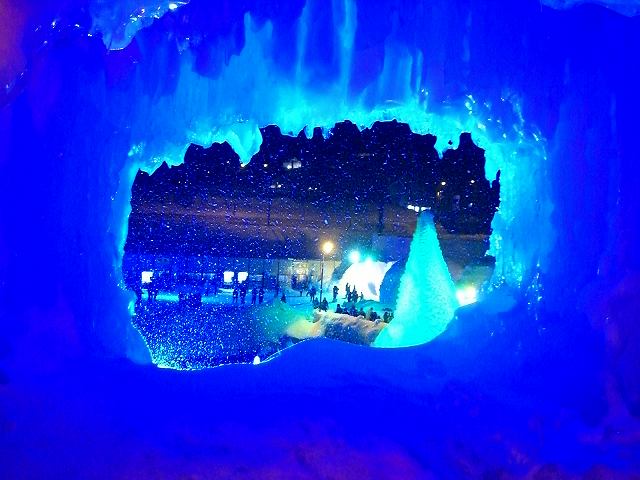 先日見学に行って来ました意外と近くなのに、初めてでした全部氷で出来ているんですライトUPがされるので夜の見学となりました~~結構寒かったです雪がちらついてとても綺麗でした。寒さも一瞬忘れますねロングランで1ヵ月半も開催しています