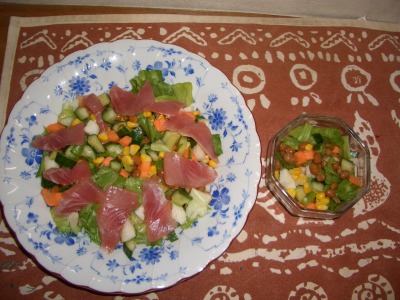 温泉でおいしいものばかり食べたのでまたまた体重がUPです今夜はこのサラダで我慢しょう~~今夜はサークルで少し汗を流し元の体重の戻ればラッキーです隣の小さな器のが旦那さまの分です納豆も入れてみました
