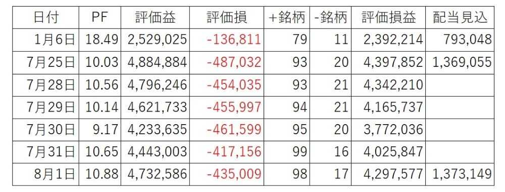 ・7月30日下記喰らって、週末なんとか評価益400キープも