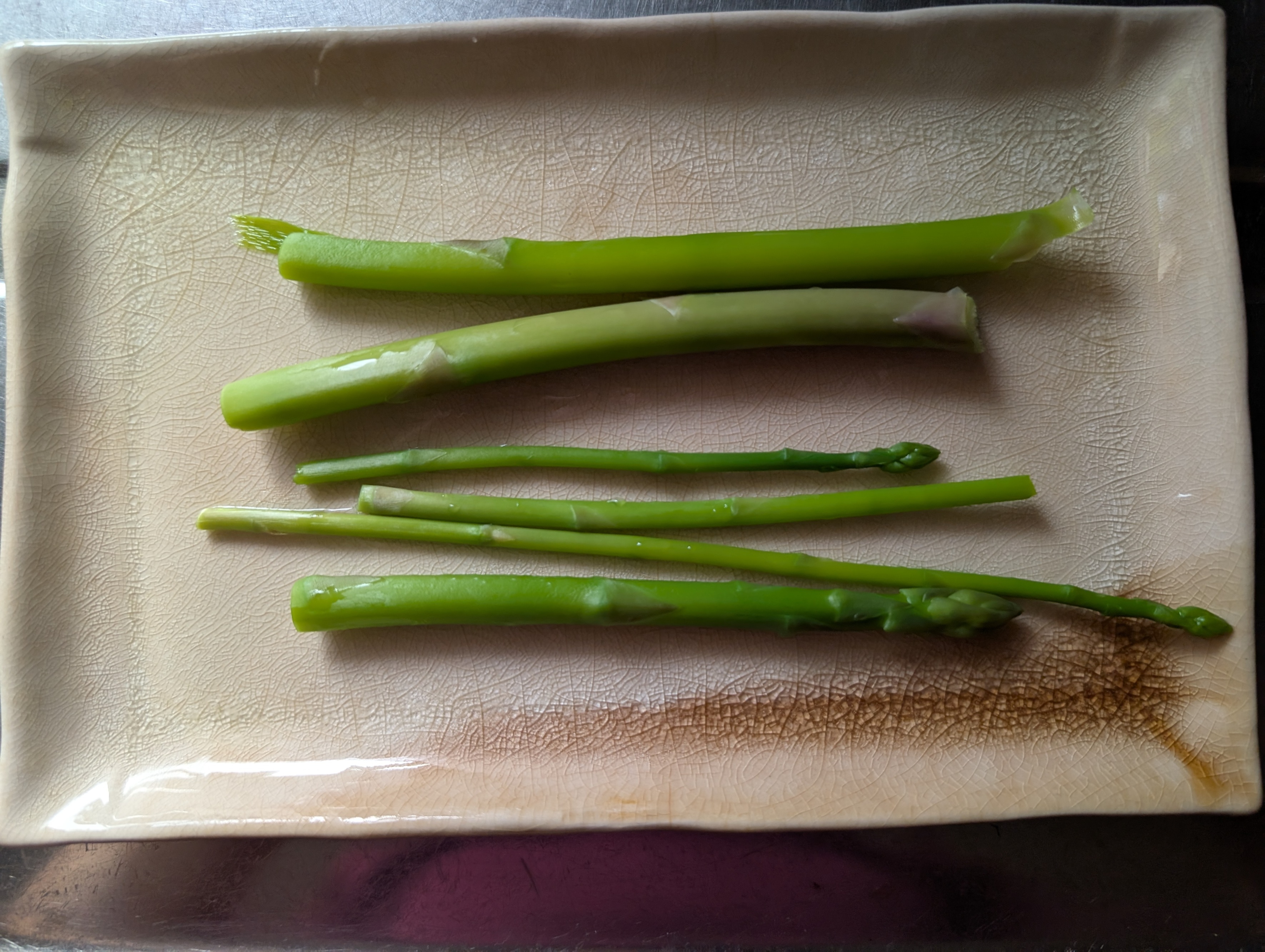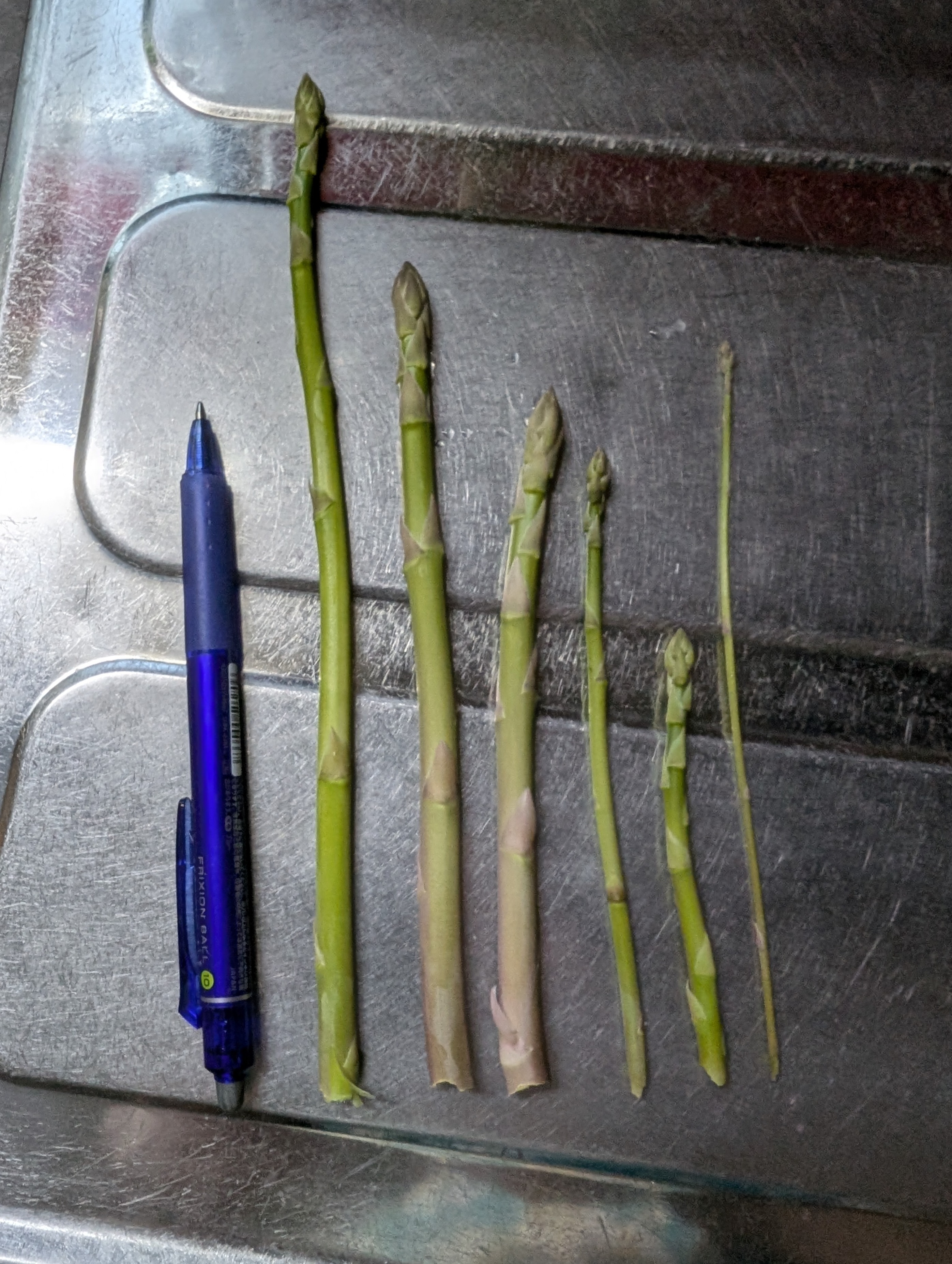 去年の秋からひと冬水を与えていなかったアスパラの鉢植え。10日くらい前に芽を出していることに気が付いた。直径1㎝にも満たないのが2本と直径3ミリ位のが3本。収穫して食べてみた。あまぁ~い。早速水をあげました。それから2,3日に一度、1~2本ですが細くて10センチほど伸びたものを食しています。ご飯支度しながら私が独り占めで食べています。幸せな甘さです。先日、あね様と一緒に野菜の苗を買いに行ってきました。キュウリを植える場所を借りることが出来なかったので、今年も鉢植えで野菜作りをすることになりました。😥やれやれ。面倒見の悪い私で大丈夫かなと…今年は肥料をもっと沢山あげます。頑張ります。あね様は半年見ないうちに少し太ったかも。私より足腰丈夫だから元気です。相変わらずと言ったところホッとしました。さて看板娘はデザインにつぶされそうです。急に忙しくて・・・プレゼン用のデータづくり。全部我が社に決まったら大変なことになる。が、決まってほしいのだ。わたし・・・耐えられるかしら。最近、ストレス食いしてるよ~。やるっきゃない。明日また新規のデータづくり資料が届く予定です。ㇹへ~です。
